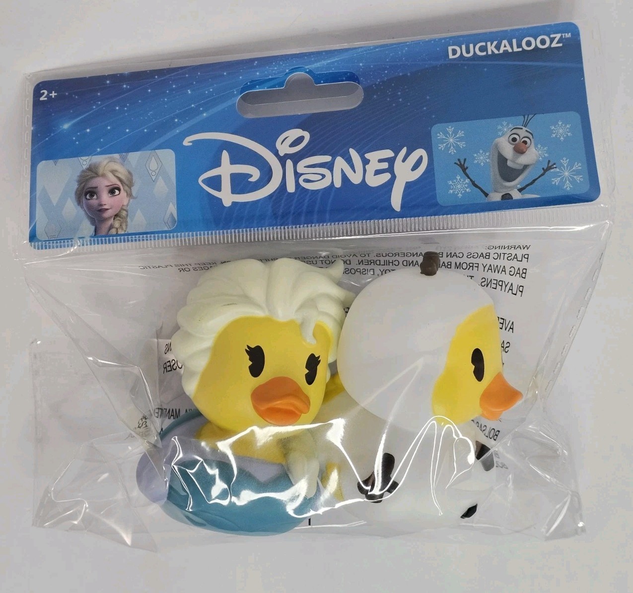The Disney Elsa & Olaf Duckalooz Rubber Duckie Jeep Duck Bath Toy 2 Pack is a fun and collectible item featuring beloved characters from the Disney franchise. These rubber duckies are modeled after Elsa and Olaf from the popular Disney movie, Frozen. Made in China, these 3" tall ducks are sure to delight fans and collectors alike with their charm and detail. Perfect for fans of Disney and contemporary collectibles, this set is a must-have addition to any Disneyana collection.