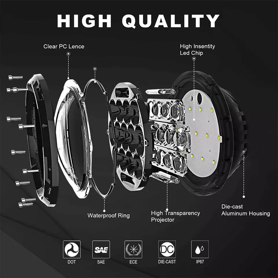 For Jeep JK JKU Smoke Led Tail Lights 7" Led Round Headlight Fog Light Turn Lamp Package includes: 2pcs 7Inch Headlight(black) 2pcs tail lights (smoke lens) 2pcs H4 to H13 Adapter 2pcs 30W fog light(black) 2 pcs 5202/2504 Adapter 2pcs Turn Signal Light(black) Features: Headlihts: - All needed wire adapters are included, plug and play, usually in 20 minutes or less. built-in anti-flicker, no blinker - 100% Advanced LED chips is more brighter 3 times than stock headlights. Dramatically improving light projection distance and overall visibility. Really light up the road for safer driving - Four models:High Beam: 6500LM★Low Beam: 4600LM ★Pure White DRL ★Amber Turn Signal Light. Newest Fantastic Design LED Headlight With Halo Angel Eyes DRL replaces original halogen and HID headlight, meet your requirements in any situation - Die-Casting Aluminum Base Housing and Anti-scractch Polycarbonate Lens, maximum protection for headlight from minor abrasions. Ribbed Design for Efficient Cooling, Lifespan up to 80000 hrs. IP68 waterproof - DOT approved,Plug and play,easy to install Tail lights - Newest LED Tail Lights for Jeep JK are Dramatically Improve Style and Performance.Super Bright 4D Lens Design with faster on/off Response Time for Driving Safety. DOT APPROVED - Our Tail lights are made of Durable Black ABS Housing and Clear PMMA Lens. High Performance USA Led Chip are Brightness and More Low Power Consumption than Factory Bulbs. Over 80000 Hrs Lifespan. - Three Light Modes: Daytime Running Lights, Brake Turn Signal Lamp and Reverse Light Function. Bringing an Exquisite Style and Improved Luminance to the Back of Your car. - DOT approved,Plug and play,easy to install Specifications: Tail light EMC: Bulid inside - LED Chips: USA Advanced Led Chips - Power: 30W/pc - IP Grade: IP68 - Voltage: DC9-16V - just plug and play, no need to change the original car circuit wires - LED taillights,nice apperence - Led lifetime: 80,000 hours - Material: Durable black ABS housing, PC lens - Certification: DOT, E-MARK - Light Color: Reverse light is white,running light is dim red,brake light/ turn signal light is bright red 7\\'\\' led headlight: - Halo Ring Colors: White color for DRL, Amber color for truning - LED Chip: USA Advanced Led Chips - LED Color: 6000K/White - Power: 105W/pc - Voltage: DC 9-16V - Luminous Flux: 6500 Lumen High Beam / 4600 Lumen Low Beam - Waterproof: IP68 - Size: 177*62*90mm - Lifespan: 70,000hours - Working Temperature: -40~+85 4\\'\\' led fog light: - LED Color: 6000K/White - Power: 30W/pc - Voltage: DC 10V~30V - Luminous Flux: 1880LM*2pcs - Waterproof: IP69 - Size: 4 Inch - Lifespan: 60,000hours - Working Temperature: -40~+85 Turn signal light : - Power: 0.1W*8 LEDs - Voltage: DC12V - Lens: Smoke - Material: durable ABS Plastic - Light Source: LED - Light color: Amber - Position: Grille turn signal lights - Color temperature: 2000K - Life span: About 50000hours Fitment: For Jeep Wrangler JK 2 Door 2007-2017 For Jeep Wrangler Unlimited JK 4 Door 2007-2017 Warranty: 5 years