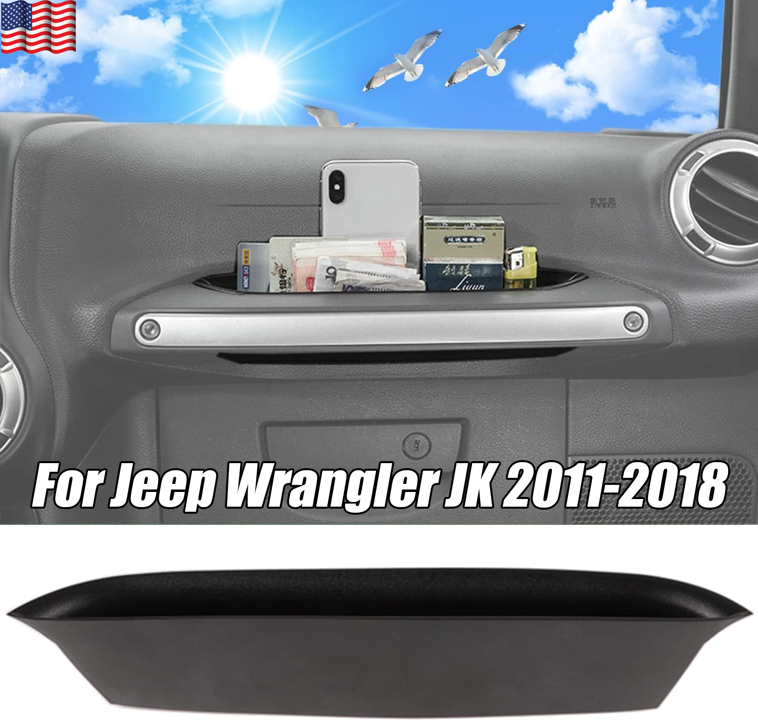 SAFE & SECURE SHOPPING 100% SATISFACTION GUARANTEED FAST SHIPPING Passenger Handle Grab Storage Tray Box for Wrangler accessories Jeep JK 11-18 Product Description Application: For 2011-2018 Jeep Wrangler JK JKU Unlimited 2/4-door. Features: Add a tiny storage space for the passenger seat, convenient for placing paper towels, sunglasses, mobile phones, change, and other small items. This accessory is made of high-quality ABS material, it is a black stamping finish, which is not only durable but also increases friction and reduces noise caused by rolling back and forth. No messy glue or drilling is required for installation. GrabTray for Jeep JL is designed to install simply, no tools are required, just put it in the passenger grab handle simply. Trays Reasonable planning and designοΌ So They fit Larger size glasses or pens and pencils, smartphones, wallets, keys, parking cards, business cards, ID cards, tissue, lipstick, cigarette, lighter, receipt, chewing gum, USB disk, coins, etc. Specifications: 100% Brand New, Never Been Used. Type: Passenger Storage Tray Organizer. Material: High-quality ABS. Color: Black. Package included: 1 x Car Passenger Storage Tray Organizer. Note: Please read all descriptions & fitment before ordering the product. Please check car models to make sure the item is the one that your car can fit. Please allow 1-3mm differences due to manual measurement. Due to the different display and different light, the picture may not reflect the actual color of the item. Professional installation is highly recommended (No Instruction Included) It would be highly appreciated if you might contact us first if you have any problems concerning the items. And you can expect all the issues would be resolved ASAP! About Us Shipping Returns About Us πππ β Fast delivery β βββ β Quality Assurance β πππ β Worry-free after-sales service β Shipping Fast shipping is very important for us. Our standard shipping service is FREE. Your order will be shipped within 1-3 business days upon full payment received. Most items are delivered within 3-5 business days, however, please allow 3-10 business days. We are shipping only to USA. We only ship to the confirmed Paypal address. We reserve the right to cancel any order for any reason at any time. We are not responsible for undeliverable addresses. Returns We offer a 30 day return policy from checkout winning date. Your satisfaction is guaranteed! If for any reason you are unhappy with your item, just return it within 30 days for a full refund, minus shipping cost. Please contact us prior to initiating a return so that we can issue you a refund authorization. Items defective upon receipt must be packaged in their retail packaging as if new and returned with a detailed description of the problem. Return shipping fees are not refundable. We reserve the right to decline any returns if the above guidelines are not followed. Copyright Β© 2022 Tongtool