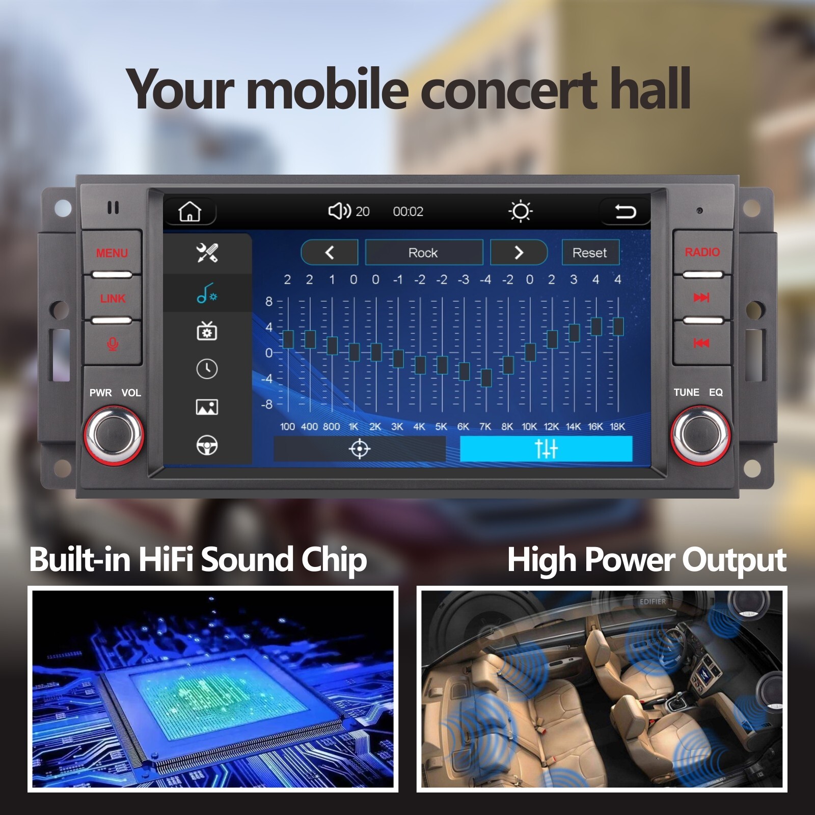 Car Stereo for Jeep Wrangler Commander Dodge Chrysler Compatible with CarPlay Android Auto High power output Bluetooth IPS touchscreen AM/FM radio receiver Compatible Car Models For Jeep Patriot (2009–2011), For Jeep Wrangler/Unlimited (2007–2015), For Jeep Liberty (2008–2011), For Jeep Commander (2008–2011), For Jeep Compass (2009–2011), For Dodge Ram (2009–2011). For Dodge Caliber (2009–2011) , For Dodge Journey (2009–2011) , For Dodge Challenger (2009–2011) , For Dodge Avenger (2008–2010) , For Grand Cherokee (2008–2011) , For Chrysler Sebring (2007–2010) , For Chrysler Aspen (2007–2010) , For Chrysler 300C (2008-2010), For Chrysler Cirrus (2007-2010) NOTE: The compatible car models are for reference. Please kindly check the size of the centre console of your car before purchasing. If you are not sure, please contac us. Specifications Sound Real 4*48w output, your car deserves better sound quality; 16-Band Eualizer; Jazz, Pop, Rock, Classic, User and other preset; Independent output for subwoofer; Independent output for Amplifier; Apple CarPlay Built-in wireless and wired Apple CarPlay, no need to use the third party app such as Zlink; Suppport "Hey Siri!" to voice controlling; iOS original style experience on car stereo; Suppport listen to FM/AM radio and use CarPlay navigation at the same time; Android Auto Built-in wireless and wired Android Auto, no need to use the third party app such as Zlink ; Suppport "OK Google!" to voice controlling; Suppport listen to FM/AM radio and use Android Auto navigation at the same time; Bluetooth Hands-free calling; Bluetooth music; ID3 TAGS; Phone book; Calling records; Radio FM frequency: 87.5-108MHz; AM frequency: 530-1710KHz; Support RDS; Support 30 stations preset; Support auto search/manual search; Soppurt North America/South America/Europe Area; Mirror Link Support wireless and wired AirPlay; Support wireless and wired Mirror Link; Rear View Camera Supports AHD rear view camera;(Note: The rear view camera is not included . If you need it, please contact us or click here to purchase it .(eBay item id:395408030943)) Supports auto reversing image and manually reversing image; Supports third party rear view camera; DVR Supports dash camera; (Note: The dash camera is not included . If you need it, please contact us to purchase it.) Supports view back; Supports video locking; DAB+ Supports DAB+;(Note: It need an extra DAB+ adaptor. If you need it, please contact us to purchase it.) USB Dual USB port; Supports USB video(MP4/AVI, 480p/720p/1080P); Supports USB music(MP3); Supports mobile phone charging; Steering Wheel Controlling Support original steering wheel controlling; Support aftermarket steering wheel remote; Other specifications Include an external microphone; Supports video output; Supports English/French/German/ITALIAN/Spanish/Russian/Portuguese/Arabic/Polish/indonesia/Chinese (Simplified) Screen size: 7inch; Resolution: 1024*600; Screen Type: IPS; Input Voltage: 12V; Output: 4*48w; Plug and play, easy to install, no need to break the original wires; Shipping We will send the item to you from the warehouse near you; We only ship to address that you left on the order, must confirm your Shipping address; All the items will be shipping within 1-2 working days after receiving the payment, except some holidays; When the shipping method is express delivery, the courier company may charge remote fees in some areas; Returns If you have not satisfied as you received the item, please return it within 30 days for a replacement or money back. Please contact us before you return it; All returned items must be in the original packaging with all components and accessories included, and you must provide us the return shipping information (The shipment or the tracking number); Return shipping fee is to be paid by the buyers. We will not be responsible for any custom duty or import tax; Warranty One Year Manufacturer's Warranty for defective items (excluding items damaged and/or misused after receipt); Defective items must be reported and returned to us within the warranty period (and in the original packaging, if possible); Customer need to tell us what the defect is and give us their eBay ID. We do not repair or replace items with an expired warranty;