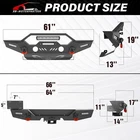 Front /Rear Bumper W/ License Plate Frame For 07-2017 2018 Jeep Wrangler JK JKU Please pay attention to the product options you select: If you choose Front & Rear Bumper,You can get 1 × Front Bumper, 1 × Rear Bumper and Mounting Hardware; If you choose Only Front Bumper,You can get 1 × Front Bumper and Mounting Hardware; If you choose Only Rear Bumper,You can get 1 × Rear Bumper and Mounting Hardware; Suitable Models : Compatible with 2007-2018 Jeep Wrangler JK JKU Unlimited 2/4 Doors Package Includes : ① Front & Rear Bumper option : 1 x Front Bumper, 1 x Rear Bumper, 5 x LED Lights, 2 x License Plate Bracket , 1 x Winch Plate , 4 x D-rings, 2" Hitch Receiver , Skid Plate, 2 x manual, screw fittings ② Fro nt Bumper option : 1 x Front Bumper, 1 x License Plate Bracket, 1 x Winch Plate, 3 x LED Lights, 2 x D-rings, Skid Plate, 1 x manual, screw fittings ③ Rear Bumper option : 1 x Rear Bumper, 2 x D-rings, 2 x LED Lights, 2" Hitch Receiver, 1 x manual, License Plate Frame, screw fittings Product Information : Package Dimensions : 65.16"D x 12.99"W x 16.73"H Installation mode: Bolt-On With Sensor Holes: No Steel thickness: 3mm Placement on Vehicle: Front/Rear Item Weight: Front Bumper: 69 Pounds; Rear Bumper: 65 Pounds Material: Carbon Steel Color: Black (hand measurements may have an error of 2-3 mm/0.078-0.118 in) Feature : Front bumper : ① The front bumper comes with a rugged style skid plate, a 12,000 lbs winch plate, a license plate bracket, two 4.75-ton D-rings (rated at 9500 lbs), pre-drilled holes for OE Fog Lights, a 312W LED spotlight and two 18W LED spotlights for strong illumination; ② The package includes all necessary mounting hardware and detailed installation instructions. The bumper with skid plate can be easily installed using bolt-on installation, without the need for drilling; ③ Strong steel front bumper and skid plate with two-stage black powder coating resists rust, ensuring durability and lasting appeal, even with minor damage; ④ Powder Coated, Durability, Waterproof; Rear Bumper : ① This bumper includes 4.75-ton capacity D-rings (rated at 9500 lbs.), 2X upgraded LED lights for illumination, Universal License Plate Bracket and a standard 2" receiver hitch; ② The package comprises mounting hardware and user-friendly installation instructions for a straightforward bolt-on installation—no drilling needed; ③ High-strength steel, durable rear bumper. Textured black powder coating resists rust for long-lasting performance and appearance; ④ Durability, Waterproof, Rust-proof; Warranty Period :2 year Standard Shipping (FedEx Ground or FedEx Home Delivery) Will usually ship within 3 business days of receiving cleared payment Please pay attention to the product options you select: If you choose Front & Rear Bumper,You can get 1 × Front Bumper, 1 × Rear Bumper and Mounting Hardware; If you choose Only Front Bumper,You can get 1 × Front Bumper and Mounting Hardware; If you choose Only Rear Bumper,You can get 1 × Rear Bumper and Mounting Hardware; Suitable Models : Compatible with 2007-2018 Jeep Wrangler JK JKU Unlimited 2/4 Doors Package Includes : ① Front & Rear Bumper option : 1 x Front Bumper, 1 x Rear Bumper, 5 x LED Lights, 2 x License Plate Bracket , 1 x Winch Plate , 4 x D-rings, 2" Hitch Receiver , Skid Plate, 2 x manual, screw fittings ② Fro nt Bumper option : 1 x Front Bumper, 1 x License Plate Bracket, 1 x Winch Plate, 3 x LED Lights, 2 x D-rings, Skid Plate, 1 x manual, screw fittings ③ Rear Bumper option : 1 x Rear Bumper, 2 x D-rings, 2 x LED Lights, 2" Hitch Receiver, 1 x manual, License Plate Frame, screw fittings Product Information : Package Dimensions : 65.16"D x 12.99"W x 16.73"H Installation mode: Bolt-On With Sensor Holes: No Steel thickness: 3mm Placement on Vehicle: Front/Rear Item Weight: Front Bumper: 69 Pounds; Rear Bumper: 65 Pounds Material: Carbon Steel Color: Black (hand measurements may have an error of 2-3 mm/0.078-0.118 in) Feature : Front bumper : ① The front bumper comes with a rugged style skid plate, a 12,000 lbs winch plate, a license plate bracket, two 4.75-ton D-rings (rated at 9500 lbs), pre-drilled holes for OE Fog Lights, a 312W LED spotlight and two 18W LED spotlights for strong illumination; ② The package includes all necessary mounting hardware and detailed installation instructions. The bumper with skid plate can be easily installed using bolt-on installation, without the need for drilling; ③ Strong steel front bumper and skid plate with two-stage black powder coating resists rust, ensuring durability and lasting appeal, even with minor damage; ④ Powder Coated, Durability, Waterproof; Rear Bumper : ① This bumper includes 4.75-ton capacity D-rings (rated at 9500 lbs.), 2X upgraded LED lights for illumination, Universal License Plate Bracket and a standard 2" receiver hitch; ② The package comprises mounting hardware and user-friendly installation instructions for a straightforward bolt-on installation—no drilling needed; ③ High-strength steel, durable rear bumper. Textured black powder coating resists rust for long-lasting performance and appearance; ④ Durability, Waterproof, Rust-proof; Warranty Period :2 year