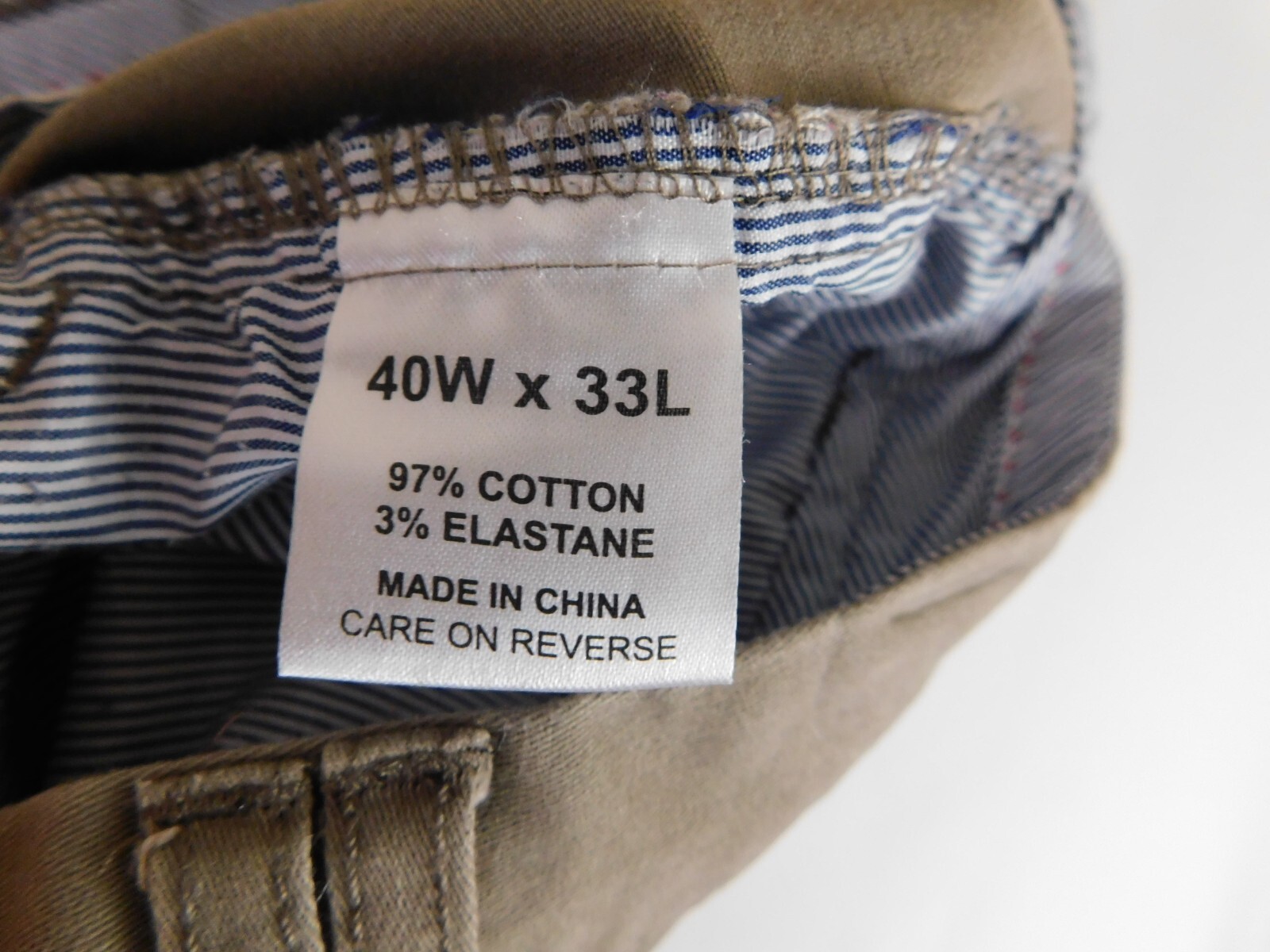 Upgrade your wardrobe with these Jeff Banks Chino Dress Business Pants in size 40W x 33L. With a slim fit design, these beige pants are perfect for any occasion from casual to formal, making them a versatile addition to your collection. Made from high-quality cotton fabric, these pants are comfortable and stylish. The zip and button closure and straight leg style add to the sleek look. Perfect for any man looking to elevate their fashion game.