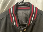 The JEFF GORDON DUPONT & PEPSI Wool and Leather Reversible jacket is designed with a stainless steel snap front closure, side pockets and a rib knit collar, cuffs and banded bottom on both sides. This team-colored jacket is officially licensed and displays the embroidered driver and team graphics on the chest, back and leather sleeves of the front. The driver's replica signature and car number is embroidered on the upper left chest of the reverse side. jacket is officially licensed and displays the embroidered driver and team graphics on the chest, back and leather sleeves of the front. The driver's replica signature and car number is embroidered on the upper left chest of the reverse side. Features Fiber Tag: Shell: 100% polyester; Lining 1 :30% wool; 50% acrylic; 20% nylon; Lining 2: Genuine Leather; Filler: 100% polyester Stainless steel snap front closure on both sides Driver and team graphics featured on the chest, back and leather sleeves on the front Reverse side displays the driver's replica signature and car number on the upper left chest Rib knit collar cuffs, and banded bottom Designed with pockets on both sides Decorated in the team colors Officially licensed Made in China SIZING Size S M L XL 2X Chest 34 36 39 42 45 Bottom 25/34 27/36 30/39 33/42 36/45 Back Length 19 19 1/2 20 20 1/2 21 Sleeve Length 25 1/2 26 1/2 27 1/2 28 1/2 29 1/2 Across Back 14 1/4 15 15 3/4 16 1/2 17 1/4 Cuff 6 6 1/2 6 1/2 7 7 1/2 Shoulder 5 3/8 5 1/2 5 3/4 6 6 1/4 Across Shoulder 15 1/2 16 1/4 17 17 3/4 18 1/2 Across Front 13 1/2 14 1/4 15 15 3/4 16 Armhole 19 20 21 22 23 Rib Height 2 1/2 2 1/2 2 1/2 2 1/2 2 1/2 Pocket 5 x 3/4 5 x 3/4 5 x 3/4 5 x 3/4 5 x 3/4 Collar Height 1 1/4 1 1/4 1 1/4 1 1/4 1 1/4 Front Stitch 1 1/4 1 1/4 1 1/4 1 1/4 1 1/4
