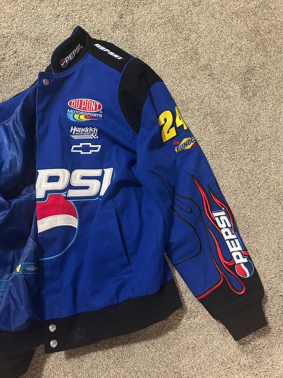 Jeff Gordon #24 Dupont Flames NASCAR Racing Jacket Mens XL Rare Vintage Collectible