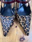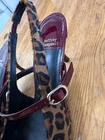 The Jeffrey Campbell Tanya Heels Cheetah Slingback Pump in US size 10 features a pointed toe design with a buckle closure for a stylish and secure fit. These mid-height heels are perfect for various occasions, from formal events to parties, weddings, and even workwear or business settings. Made with comfortable leather insoles and adjustable straps, these brown heels with a cheetah print design are a fashionable and versatile addition to any woman's wardrobe. Ideal for summer, fall, and spring, these Jeffrey Campbell Tanya heels embody a mix of clubwear, bohemian, and city themes.