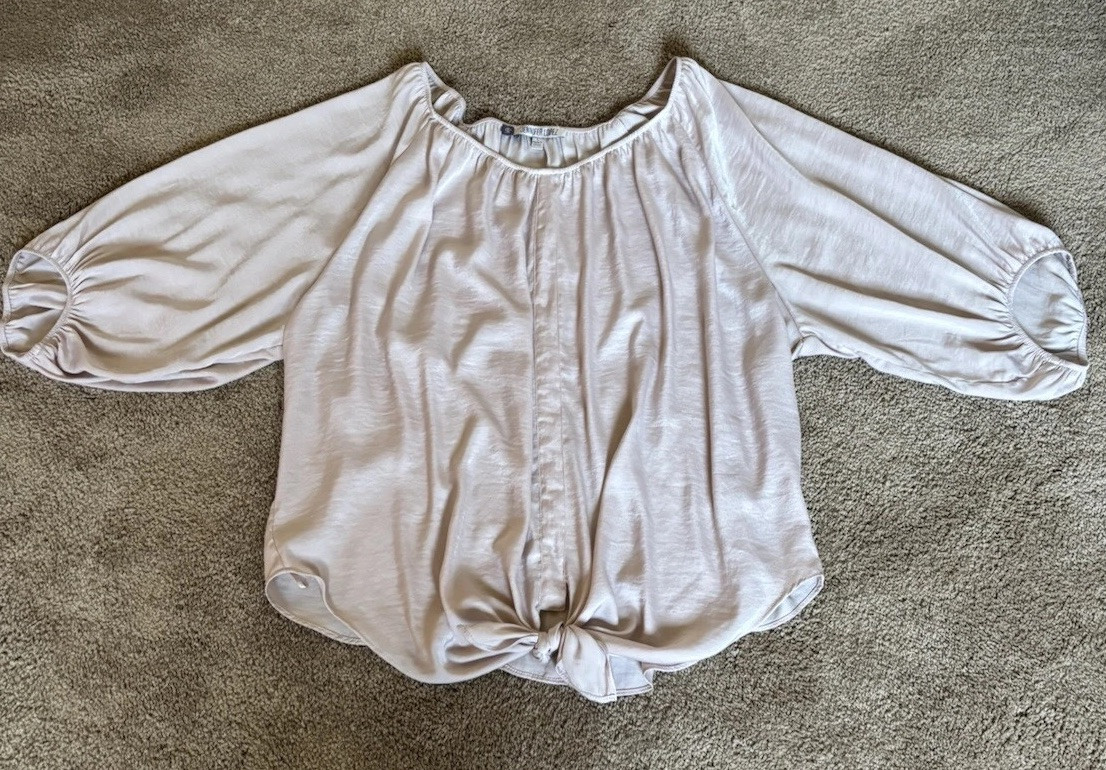 Elevate your wardrobe with the Jennifer Lopez Peachy Pink Pullover Top, a piece that exudes both comfort and elegance. Designed for the modern woman, this blouse features playful bell 3/4 sleeves and a flattering off-shoulder neckline that complements its relaxed fit. The soft chiffon material, infused with a subtle studded accent, adds a touch of sophistication to this tunic-style top. Versatile and stylish, it's perfect for a range of occasions from a casual day out to a chic cocktail party or while you're out traveling. This top is machine washable, making it an easy-care addition to your clothing collection. With its solid pink hue and timeless design, it's a must-have for those who appreciate a blend of classic and designer-inspired fashion.