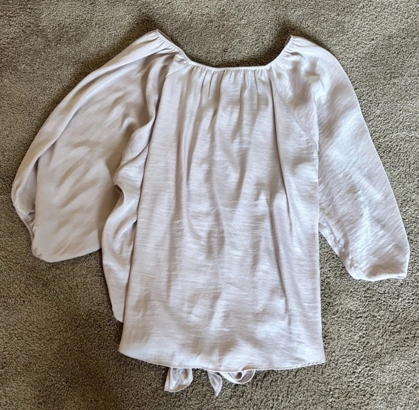 Time and Tru Floral Embroidered Boho Peasant Top Women’s Size Large with Tie Sleeves