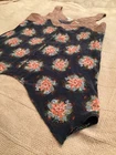 Jenny Han beautiful, floral, silk top. Preowned in great condition. Beautiful navy and variety of other colors. See pictures.Size S. Beautiful quality fabric. Very chic with a handkerchief type hem. Pair this top with your favorite jeans or shorts. Would be a great top to add to one’s wardrobe. So Gorgeous. From a pet and smoke free home. Buyer pays all shipping costs. No Returns. Thank You.
