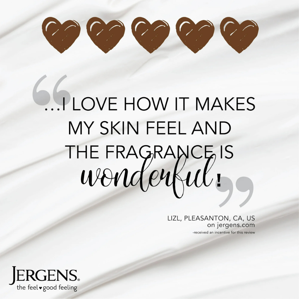 Jergens Hydrating Coconut Body Lotion Moisturizer for Dry Skin, 26.5 oz (1 PACK) Pamper yourself with Jergens Hydrating Coconut Body Lotion. This oil-infused lotion hydrates instantly and leaves your skin feeling silky smooth and healthy-looking. Infused with the power of coconut water and nourishing coconut oil, Jergens moisturizing lotion targets dry skin and leaves it looking healthy, radiant and supple. This is the perfect moisturizing lotion for dry skin. If you have dry hands, elbows or legs, get relief fast with Jergens Hydrating Coconut Hand Lotion. No need to worry about greasy skin. This lotion for dry skin absorbs quickly and provides long-lasting moisture without feeling tacky, sticky or greasy. Our dermatologist tested body lotion is vegan friendly, cruelty free and doesn’t contain parabens and artificial dyes. Lightly scented with tropical coconut, you will be transported to an island paradise anytime you use it. For best results, smooth Jergens Hydrating Coconut Hand and Body Lotion for dry skin on your dry skin daily to indulge in refreshed, hydrated skin every day. OUR STORY: Since 1901, Jergens skin care has been the trusted brand for comforting moisture. That’s because everything we do is designed to help you feel good – soothing relief from dryness, a touch of summer color, a fruity scent that makes Monday feel like Friday. We’re not here to stop at skin deep. We’re here to help you feel truly, deeply, skin-to-soul comfortable, with a few surprises along the way. We bottle all that up into the Feel-Good Feeling of Jergens. Satisfaction Guarantee. Limitations may apply. HYDRATING COCONUT OIL AND WATER - Blended with coconut oil and coconut water, this lotion provides long-lasting moisture, plus a light tropical fragrance INSTANT MOISTURE FOR DRY SKIN - This oil-Infused body lotion formula provides long-lasting hydration to dry and extra dry skin, locking in moisture for beautiful skin you can enjoy all year long INDULGE IN DEEPLY NOURISHED SKIN - Use this moisturizing lotion daily through every season for long-lasting, moisture-rich hydration and radiant, glowing skin LIGHTWEIGHT, FAST-ABSORBING LOTION - Our lightweight hand lotion formula absorbs quickly and restores your skin's deep luminosity without feeling heavy after you apply it DERMATOLOGIST TESTED FORMULA - This vegan friendly and cruelty free formula is free of parabens and artificial dyes