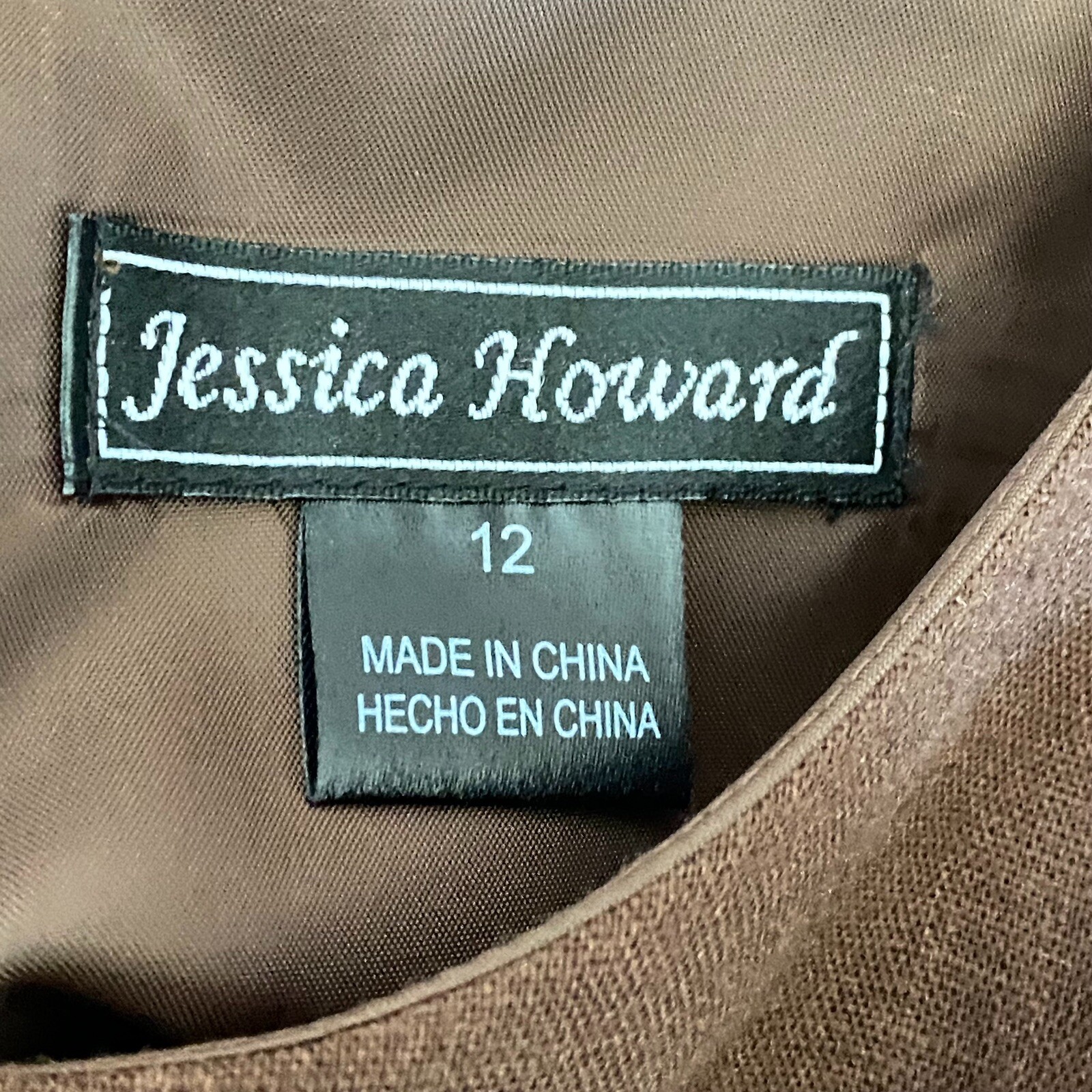 Note: Dress originally came with a belt (not included). There are belt loops (see photos). Just add your own belt. This beautiful midi dress from JESSICA HOWARD is sure to turn heads! With a flattering fit and flare style, it's perfect for any occasion, from weddings to business meetings - just add a cardigan or jacket. The dress is sleeveless and features a scoop neckline with a back zip closure Made from a blend of rayon and linen, this dress is both comfortable and stylish. The solid brown color is perfect for all seasons, whether paired with tights and boots in the winter or sandals in the summer. It's a must-have addition to any wardrobe! Sz 12 Underarm To Underarm = aprx 18” Waist (measured flat) = aprx 15” Length = aprx 48”
