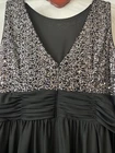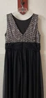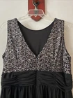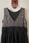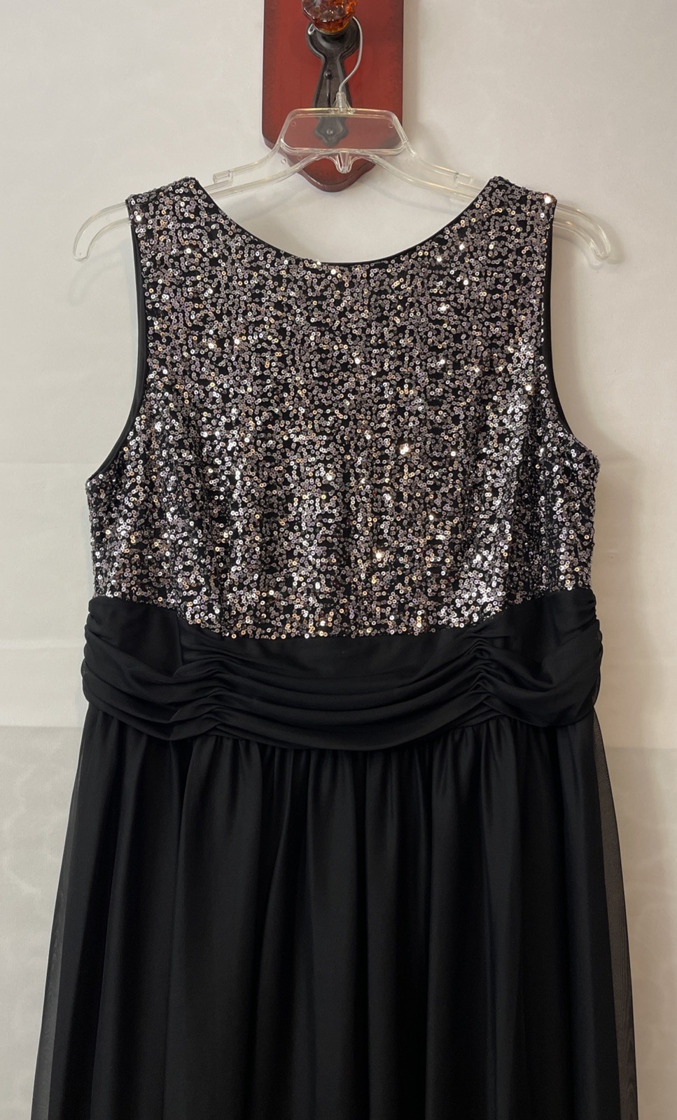 This Jessica Howard Women's Black Sleeveless with silver Sequined Long Formal Dress in size 18W is a stunning and elegant choice for any formal occasion. This dress features a round neckline, wide shoulder straps, and intricate upper sequin detailing for a glamorous look. Made from a blend of polyester and nylon with a lacy style fabric type, this dress is designed to be slimming and flattering. The dress has a back zipper closure and is lined for added comfort and quality. Perfect for events like balls, weddings, proms, or formal gatherings, this dress exudes a sophisticated and timeless style that is sure to turn heads. Length: 62 inches. Chest: 21 inches across laying flat with room for stretch! The material is stretchy 🌸