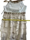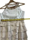 Jessica Howard white cream beaded shimmery empire waist formal dress. The dress is 56.5” The slit up the back is 21” Normal signs of wear for a preowned dress. See pictures for assessment and measurements. Thanks for looking.
