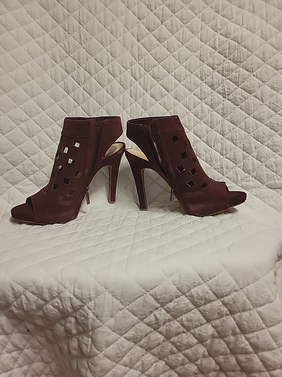 These heels are absolutely stunning! The rich burgundy suede is so luxurious, and the pointed toe gives them a sleek, elegant look. They fit true to size and are surprisingly comfortable for stilettos—perfect for a night out or special occasions. The craftsmanship is top-notch, and the leather outsole adds durability. I love how they elevate any outfit instantly. Definitely worth every penny!
