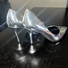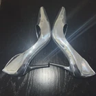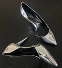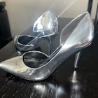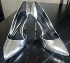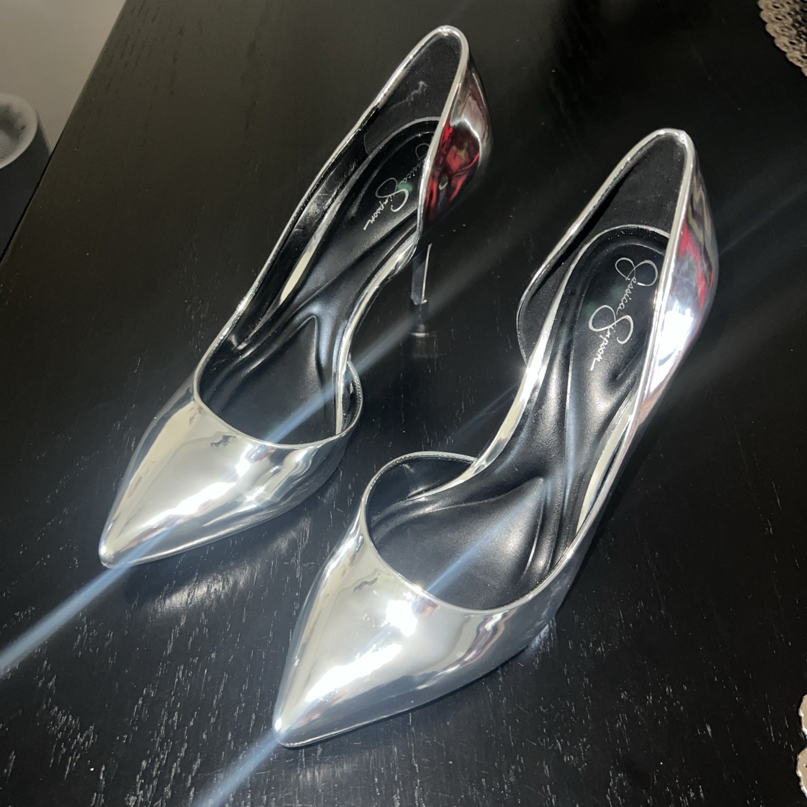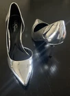 The Jessica Simpson Prizma D'Orsay Pump Heel in Silver Chrome is a stylish and glamorous option for women who want to make a statement. With a pointed toe, stiletto heel, and comfortable slip-on design, these shoes are perfect for various occasions such as weddings, parties, or even a night out on the town. The metallic silver chrome color adds a touch of sparkle and sophistication, making them a versatile choice for both formal and casual events. Made of patent leather with a synthetic outsole and lining material, these heels are not only chic but also durable and comfortable to wear all year round. New no tag no box. Gorgeous shoes! Please see pictures thoroughly and up close. Thank you for looking!