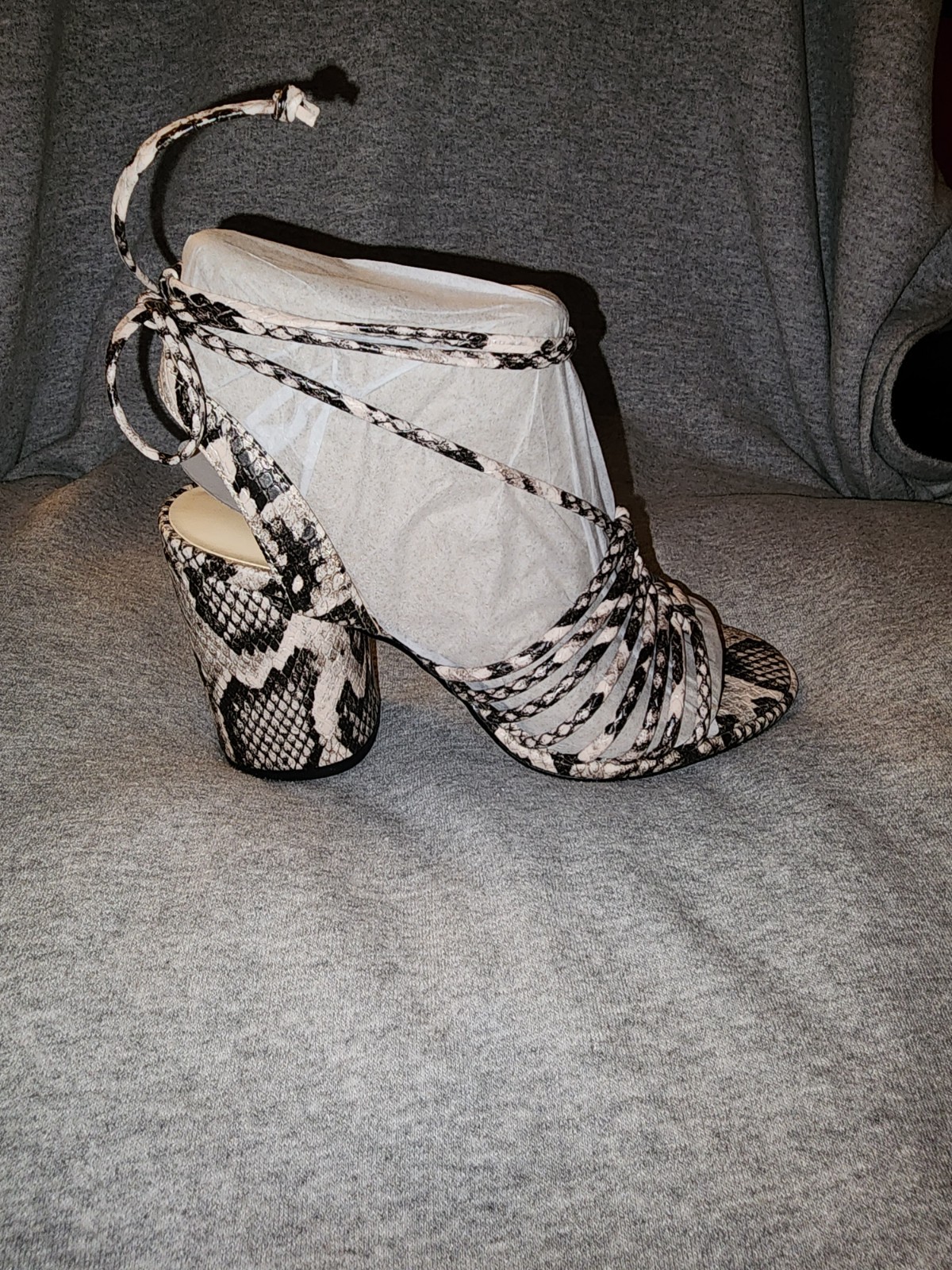 The Jessica Simpson Shoes are a pair of formal heels in a solid snake color, featuring a stylish strappy design with an ankle strap accent. The 3-inch block heel provides comfort and stability, while the synthetic lining and upper material offer durability. Perfect for summer and spring occasions, these size 5 shoes are a chic addition to any woman's wardrobe. The Jessica Simpson brand ensures quality and style, making these heels a must-have for any fashion-forward individual.