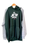 Show your support for the New York Jets with this officially licensed NFL Team Apparel hoodie. Made for men in size 3XL, this green hoodie features the team's logo, making it the perfect addition to any fan's wardrobe. Whether you're catching the game at the stadium or watching from home, this hoodie is sure to keep you warm and comfortable. Made of high-quality materials, it's both durable and stylish. Perfect for any football fan, this hoodie is a must-have for any Jets supporter.