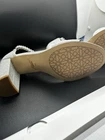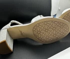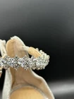 The Jewel Badgley Mischka Louise Peep-Toe Block Heel in size 10 is a stylish and elegant shoe perfect for a wedding occasion. The strappy design with a block heel and peep-toe detail adds a touch of sophistication to any outfit. Made from synthetic material and featuring a solid silver color, these heels are a versatile option for summer, fall, and spring events. The brand, Badgley Mischka, is synonymous with high-quality and fashionable footwear, making these shoes a great choice for any fashion-forward woman.