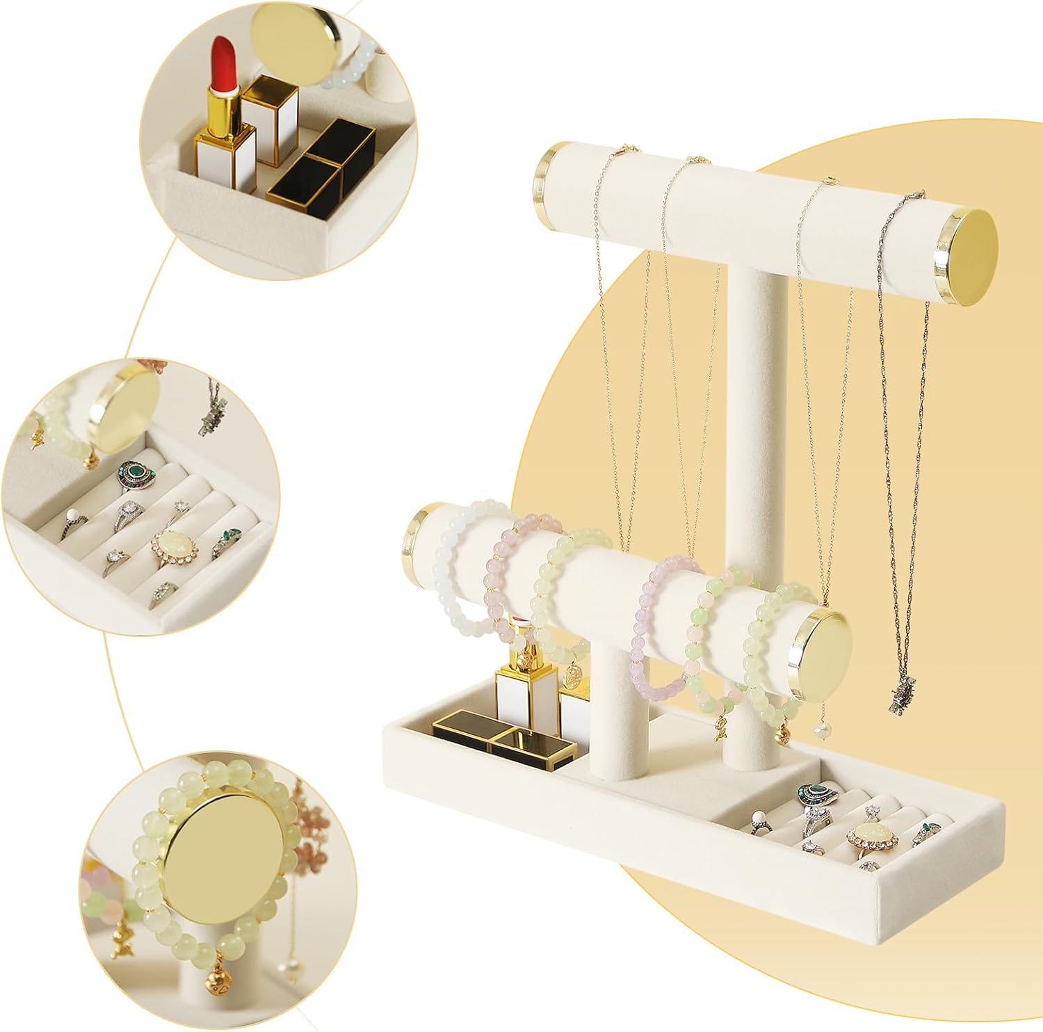 Store New Arrivals Add to Favorite View Feedback Contact Jewelry Holder Stand 2 Tier Necklace Bracelet Organizer with Tray Display Beige Description Item model number 2 tier with tray Style Modern Number of Items 1 Product Dimensions 14"D x 8"W x 3"H Batteries Included? No Jewelry Storage Type Jewelry Stand Batteries Required? No Number of Compartments 1 Material Velvet Finish Type Textured Item Package Quantity 1 Item Weight 1.37 pounds Finish Textured Target Audience Women Mounting Type Table Top Color Beige Shape T-Shape Recommended Uses For Product Bangle Number Of Pieces 1 Inner Material Velvet Size 2 Tier+Tray Powerful: jewelry organizer stand can simultaneously store a dozen bracelets, necklaces,hair ties and scrunchies,the rings tray can store a dozen rings earrings and other jewelry accessories Beautiful: this bracelet and necklace holder organizer is made from soft beige white velvet,it is very beautiful and makes your jewelry look lovely, perfect for photo props, and very strong to stay Simple installation: bracelet display stand contains two rods, a base and is easy to install Small volume: the 2tier bracelet holder is small, doesn't take up much space on a desktop Gifts: jewelry tower tree comes in a sturdy inner box and can be given as a gift to your friends and loved ones ABOUT US We offer the best prices around on high quality products. Our E-store includes media such as books, movies, music and games while offering electronics, toys, sporting apparel, clothing, tools, general home, garden items and more. SHIPPING We are always working hard to ensure your package arrives as soon as possible. Please understand that some factors like weather, high postal traffic, and the performance of shipping companies are outside of our control. We offer free shipping to the lower 48 states and ship within 2 business days of payment, usually sooner. We do not accept P.O. Boxes. Please provide a physical address. RETURNS We offer a 30-Day Return Policy on items which you are not completely satisfied with. You have the option for a full-refund or an exchange of the item. No returns are available on items shipped outside of the USA. PAYMENT We accept PayPal. CONTACT US This page content is yet to come Please ad us to your favorite seller and visit again later Thank You CUSTOMER SATISFACTION We try our very best to make sure every customer is completely satisfied. If there's a problem, message us! We're happy to help.