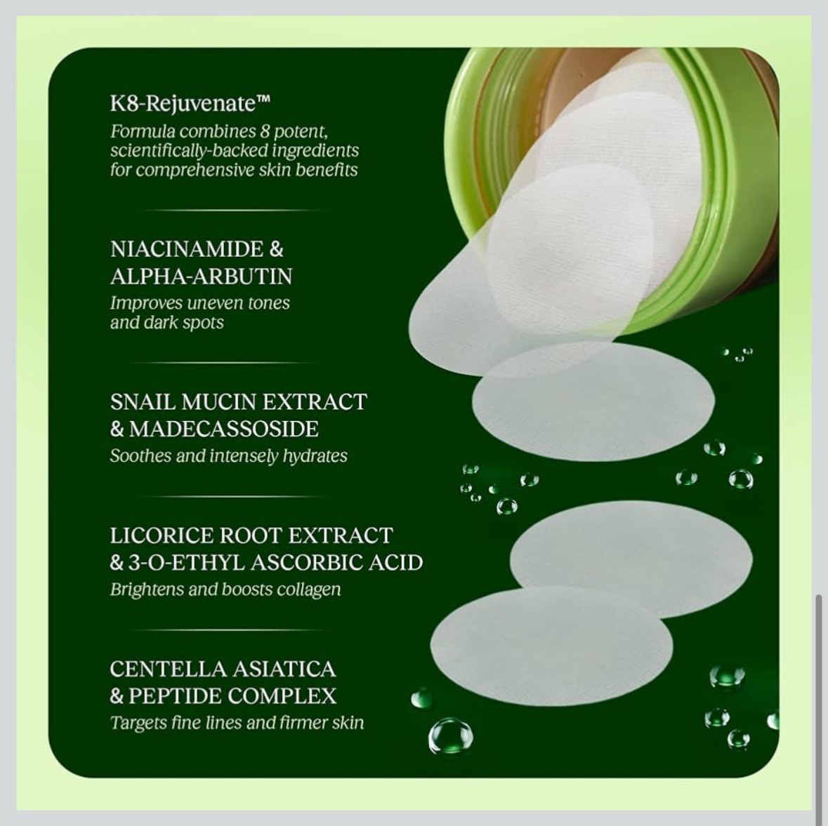 Advanced K-Beauty Formula: JiYu's professional-grade Toning Polish Pads deliver a powerful Korean skincare treatment featuring Snail Mucin, Niacinamide, a unique Peptide Complex, and Centella Asiatica. Our proprietary anti-aging formula helps improve the appearance of dark spots, wrinkles, acne marks, fine lines, and redness. One Month Supply Dark Spot & Wrinkle Solution: Potent blend of Alpha-Arbutin, Licorice Root Extract and a Unique Peptide Formula helps reduce dark spots & smooths fine lines. One step away from that coveted 'glass skin' glow. Anti-Aging Formula: JiYu's Advanced skincare complex featuring 3-O-Ethyl Ascorbic Acid and Madecassoside. Helps create ultimate hydration, rejuvenation, & supports natural firmness. See and feel more youthful-looking skin with continued use. Advanced Skin Renewal: Premium formula supports reduced redness, blotches, and acne marks. Centella Asiatica and Snail Mucin Extract help soothe and balance pores for a clearer, more refined skin tone. Perfect for all skin types. Versatile Rejuvenation Essential: Use as both a daily toner or intensive treatment mask. For best results cleanse skin, apply pad evenly in gentle circular motions, wait 40-60 seconds, then apply moisturizer & continue with your skincare routine. Or leave on for up to 15 min as a spot-treating mask.