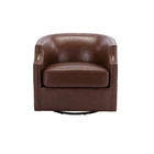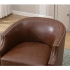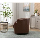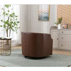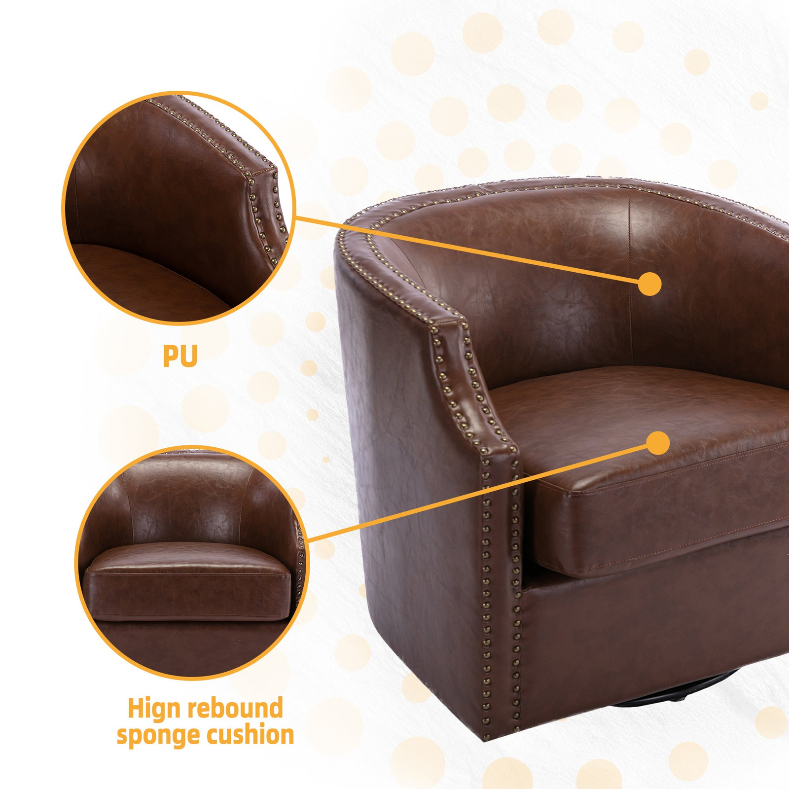 Specifications Place of Origin China Main Color Coffee Main Material PU Leather Filler Foam Use Case Primary Living Space Dangerous Goods #dangerFlag# Dimensions & Weights Assembled Length (in.) 30.12 Assembled Width (in.) 28.35 Assembled Height (in.) 28.35 Weight (lbs) 52.90 Product Features 【PERFECT CURVES + RIVET DECORATIONS】Vintage mid-century modern style, make you come home bright and refreshing. It can be placed in the living room, bedroom, study, office, sitting on it to take a nap, relax, read or watch TV, it is the best choice! 【360-degree rotation】 360-degree smooth rotation, enlarging the visual space, you can change the angle at any time to enjoy the beautiful scenery, more convenient to communicate with family members to enhance their feelings. 【Soft and Comfortable】Soft package of backrest and armrests, arc modeling exquisite, cushion full, sedentary comfort, relax every inch of your muscles.PU leather wrapped, dirt-resistant and durable, good care, suitable for you who love to be neat and tidy. 【Sturdy and Durable】Solid wood frame + rotating turntable, load capacity up to 250 pounds, give you steady happiness. 【No Assembly Required】No need to worry about assembly because this chair is ready to use when it arrives. Description Sturdy & Durable Made of exquisite material, our upholstered accent chair is firm and durable. The surface is mainly made of PU leather that is water-resistant and breathable