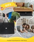 [Upgrade Your Puzzle Board] - Our portable puzzle board is perfect for storing, transporting and assembling your favorite puzzles. It has a flexible and sturdy carrying handle and black waterproof bag, as well as 2 separate puzzle mat that you can easily move around, while the portable design makes it safe from pets and children! it's lighter than traditional wooden storage racks and superior to other materials used for portable puzzle boards. [Perfect Size For Your Puzzles] -Our Folding puzzle table Unfolded size 73inch*26inch, and fits most 1500 piece puzzles. Plus, our 2-in-1 multi-purpose colorful puzzle sorting trays help you keep your puzzles organized. you can easily organize unfinished puzzles by 4 different color, picture, or edge pieces. Perfect for solo puzzlers or families. [Designed For Puzzle Lovers] - Our Puzzle Caddy Board With a high-quality zipper for a sturdy closure system, premium vegan leather for a stylish look and long-lasting durability, waterproof material for the safety of your masterpiece, non-slip microsuede work surface, and a sturdy carrying handle for easy maneuvering, you'll love the portability of jigsaw puzzle boards portable and find them a great solution for completing puzzles on the go. [Stay Organized] - Don't let your puzzles take over your space. Our Puzzle Storage Board is the perfect portable puzzle table for adults or anyone who wants to keep their puzzle boards organized and stored when not in use. With a removable puzzle board work surface, you can easily go from working on a puzzle to storing it. [Perfect Gift For Puzzle Lovers] - Looking for the perfect gift for the puzzle lover in your life? our beautifully designed portable puzzle caddy board is of the best puzzle accessories to use as a birthday gift, gift for mom, Father's Day gift, grandma gifts, especially during the holiday season like Thanksgiving and Christmas.