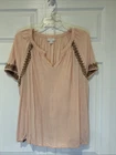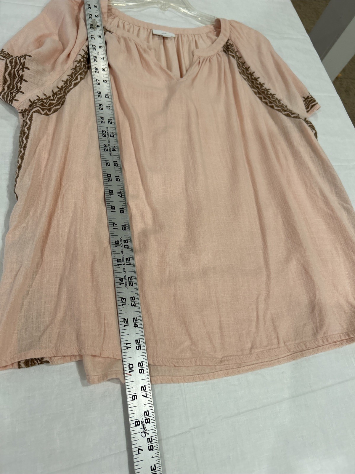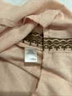 This J. Jill Women's Linen Blend Blouse in pink, size XL, is a stylish and comfortable option for a casual, beachy look. The V-neckline, pullover closure, and relaxed fit make it easy to wear for various occasions such as travel, parties, or everyday wear. The embroidered accents and lightweight fabric add a touch of bohemian flair, Machine washable and made with a linen blend, Previously worn, no visible flaws, little to no signs of wear Beach Bohemian Lightweight Casual Coastal