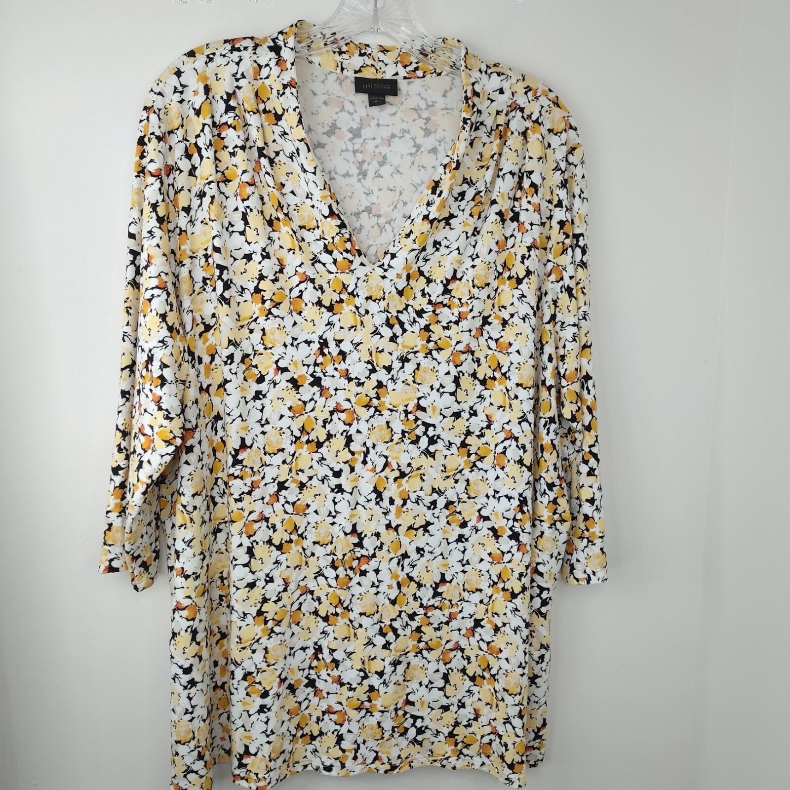 Add a touch of feminine charm to your wardrobe with this J. Jill Top blouse. 23 inches from pit to pit, 27 inches from shoulder to hem The v-neckline, pullover closure, and casual sleeves make it perfect for any occasion, whether it's a winter or summer day. The multicolor floral pattern on the rayon with a subtle crinkled texture fabric gives it a flowy look that is sure to flatter your figure. This blouse is machine washable, making it easy to care for. It is a size PXL, fitting petite women comfortably. The relaxed fit of the blouse ensures comfort while the flower theme adds a touch of elegance.