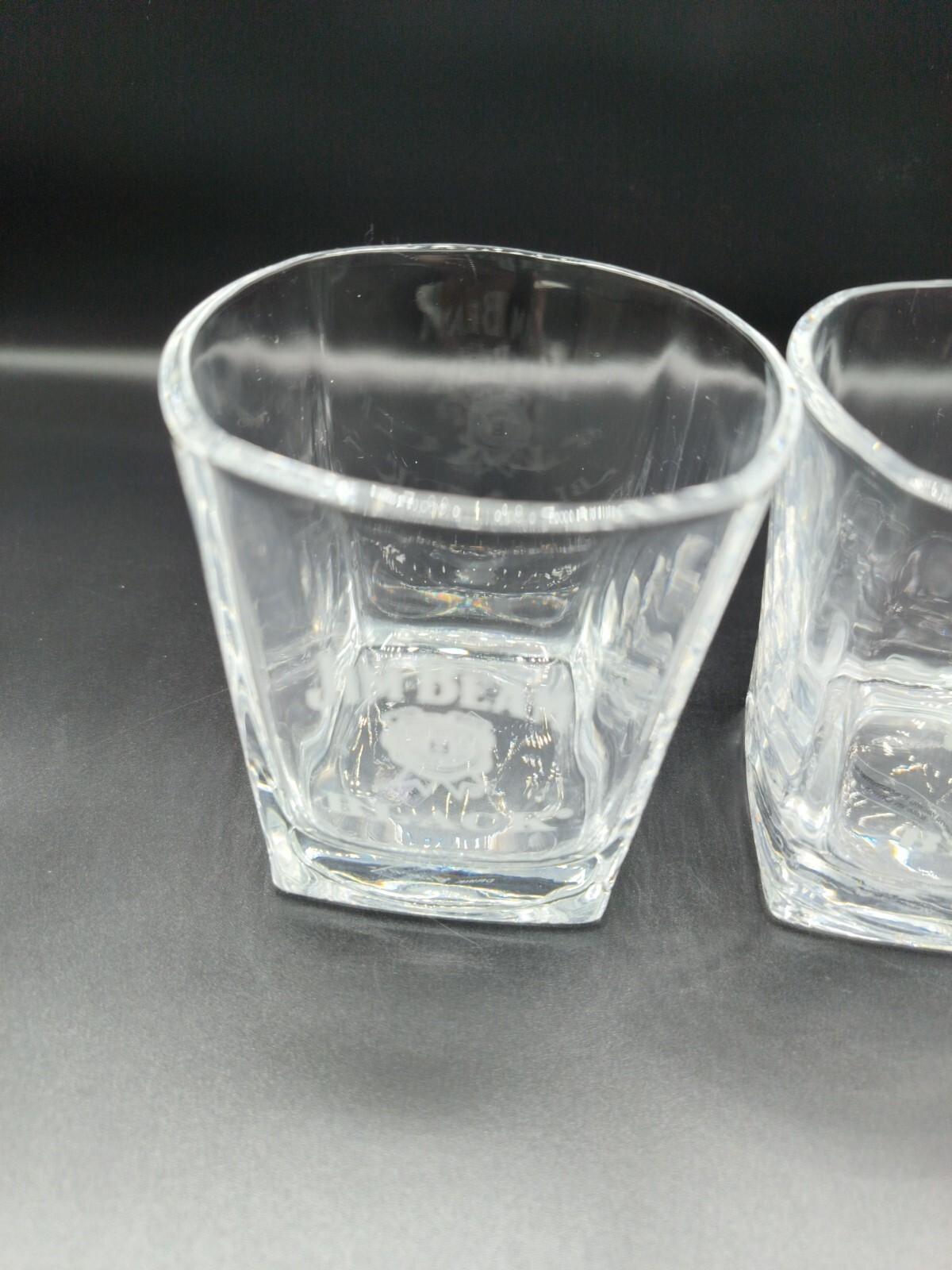 2 JIM BEAM BLACK 8 oz Rocks Square Whiskey Bourbon Glasses ~ Drink Smart ~ H 3.5 inches tall