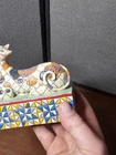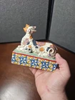 This adorable Jim Shore figurine is full of charm and character! The colorful harlequin design on the cat makes it a standout piece, perfect for collectors. Despite its age, it’s in great condition with only minor wear that adds to its vintage appeal. The detailing is exquisite, and the size is just right for displaying on a shelf or desk. A delightful find for any cat lover or Jim Shore fan!