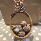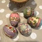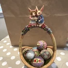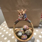 Celebrate the Easter season with the Jim Shore "Gathering Joy" Set of 6, featuring a charming basket filled with eggs, crafted with detail and care by renowned artist Jim Shore. Each piece in this collection embodies the spirit of spring and the joy of the Easter holiday, with vibrant multicolor designs and a country-style appeal that complements any home decor. Made from high-quality resin with a matte finish, these figurines are not only visually appealing but also durable. The set includes six units, each measuring 11 inches in height and 5 inches in width, all packaged neatly in a box. Signed by the artist, this collection from 2006 is a testament to Jim Shore's unique artistic vision and Enesco's commitment to beautiful craftsmanship.