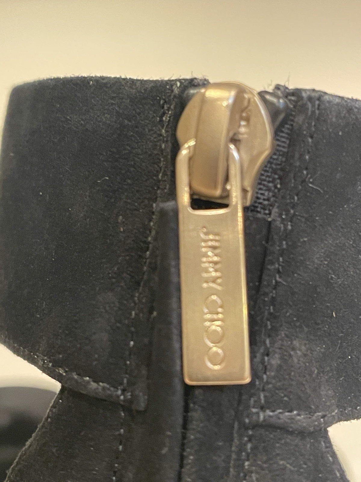The Jimmy Choo Bethel Black Suede Sandal in size 41/11 US is a stylish and elegant option for a party or cocktail occasion. With a block heel and strappy design, these sandals feature a black suede upper material and leather lining. The solid color and sleek style make them versatile for both summer and spring seasons, adding a touch of luxury to any outfit. Made by the renowned brand Jimmy Choo, these sandals are a chic choice for women looking to make a statement with their footwear.