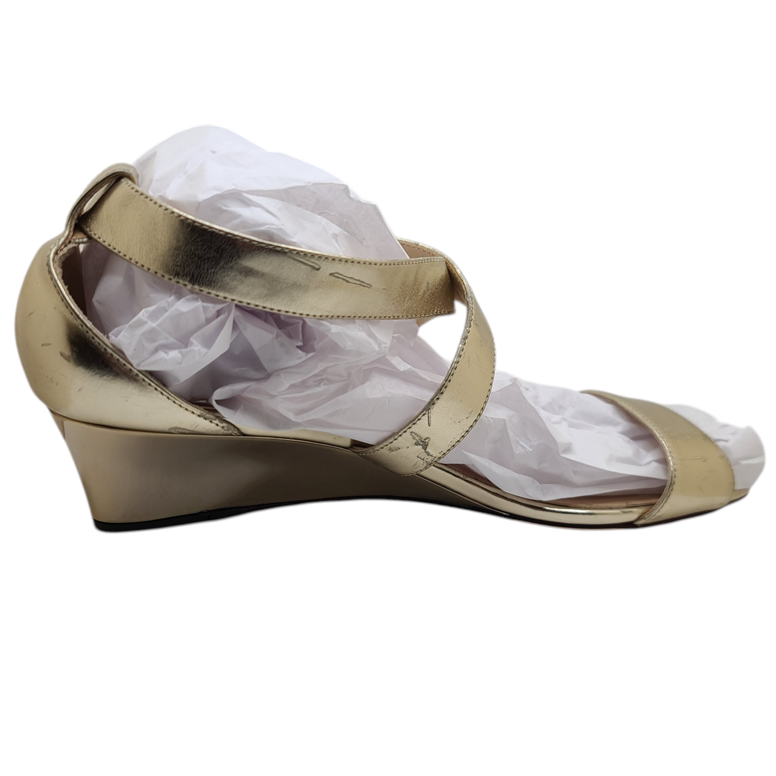 KleverKosmetics Our eBay Store About Us Contact Us Add to Favorite Sellers Jimmy Choo Gold Metallic Leather Gladiator Sandals 40EU/10US *See Description* ** These Gold Metallic Leather Gladiator Sandals are New! These were the display model and have a light scuffs throughout the shoe and soles. There is a black line through Choo on the labels on the inside of shoe. You will receive what is shown in pictures. ** Does Not come with Original Box or Original Dust Bag. These Gold Metallic Leather Gladiator Sandals are New! These were the display model shoes and have a few light scuffs on the shoe and soles. There is a black line through Choo on the labels on the inside of shoe. You will receive what is shown in pictures. Jimmy Choo sizing run small. Please check the Jimmy Choo sizing chart online. Please contact us with any questions or concerns before purchasing. Returns will not be accepted, unless there is an error on our part. Return and Refund Information • Please be aware that colors on the screen may appear slightly different in person. • Please be familiar with product. Feel free to contact us if you have any questions. • DUE TO HEALTH AND SANITARY ISSUES CONCERNING COSMETICS OR SKINCARE WE DO NOT ACCEPT RETURNS ON THESE ITEMS. ALL SALES ARE FINAL. • WE WILL ONLY ACCEPT RETURNS WHEN THE ERROR IS ON OUR END. • Attention VeRO members: We're not affiliated with or endorsed by the companies mentioned in this listing. All trademarks and copyrights are acknowledged, they are only used for informative description of the items offered for sale. Warranty information We are not an authorized dealer of this product and any warranty included with the product may not be honored by the manufacturer.