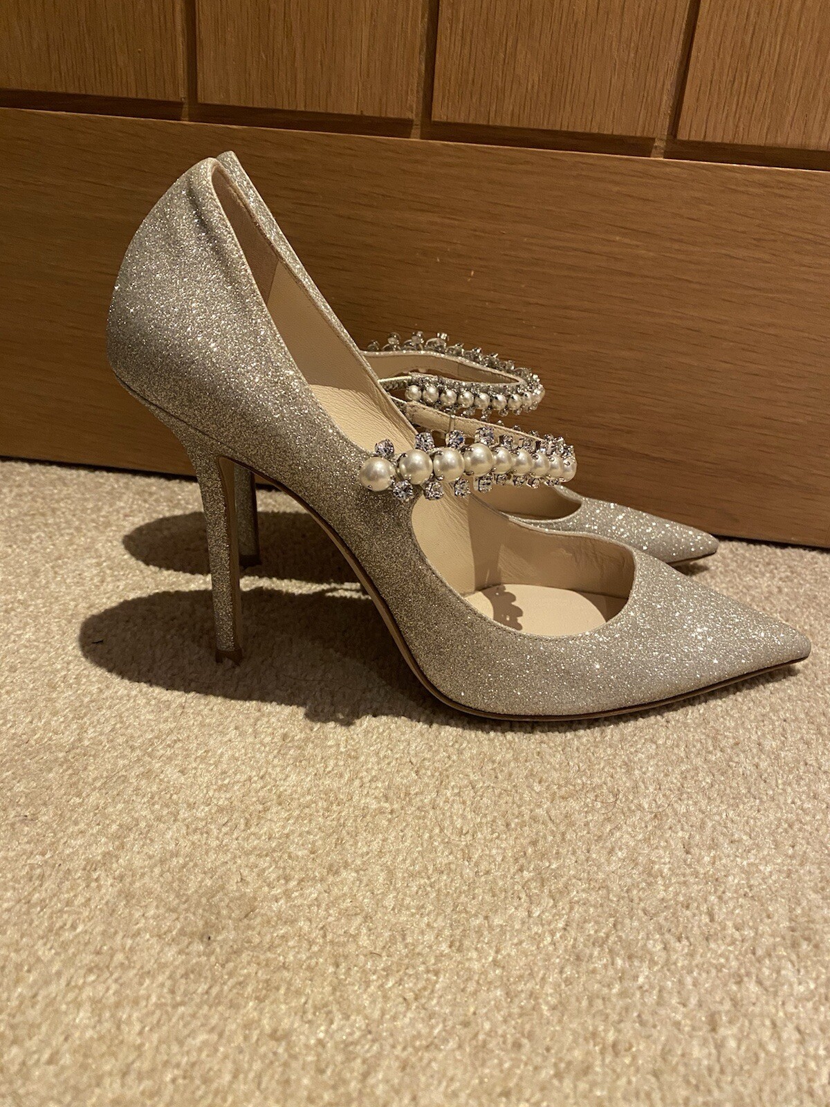 Jimmy choo heels worn once for my wedding in 2022, I have attached some of my professional wedding photos. I haven’t worn them since. Originally paid £895 but open to offers. Any questions please ask Many thanks