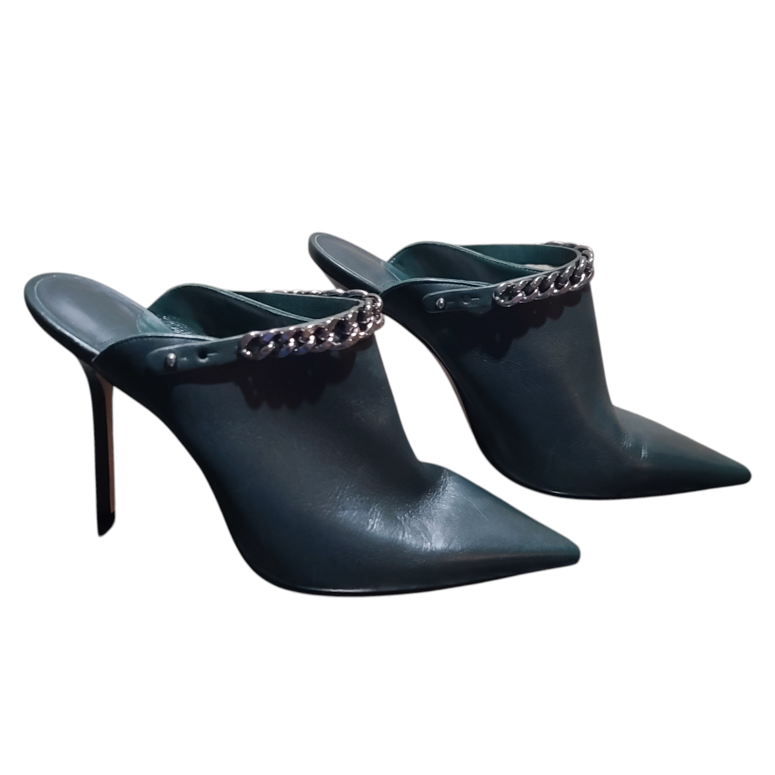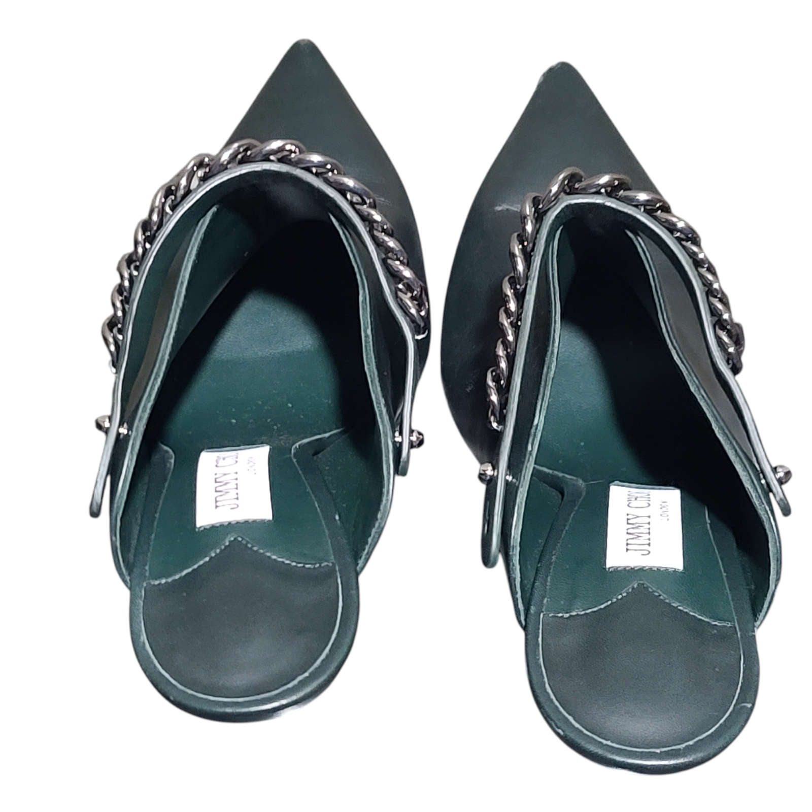 KleverKosmetics Our eBay Store About Us Contact Us Add to Favorite Sellers Jimmy Choo Lexx 100 Dark Green Leather Mules Size 39.5EU/9.5US *See Description* ** These shoes are Pre-Owned. The color is dark green with a silver chain. There are minor scratch marks on the leather. The front right toe has a gouge. There is some wear on the soles on the bottom of the shoes. You will receive what is pictured. ** Does Not come with Original Box or Dust Bag. These shoes are Pre-Owned. Please refer to pictures and description. The chain can be worn on the instep or around the heel of the foot. Pointed toe, Pointed toe, High vamp, Leather upper, lining and sole. Please contact us with any questions or concerns before purchasing. Jimmy Choo sizing run small. Please check the Jimmy Choo sizing chart online. Return and Refund Information • Please be aware that colors on the screen may appear slightly different in person. • Please be familiar with product. Feel free to contact us if you have any questions. • DUE TO HEALTH AND SANITARY ISSUES CONCERNING COSMETICS OR SKINCARE WE DO NOT ACCEPT RETURNS ON THESE ITEMS. ALL SALES ARE FINAL. • WE WILL ONLY ACCEPT RETURNS WHEN THE ERROR IS ON OUR END. • Attention VeRO members: We're not affiliated with or endorsed by the companies mentioned in this listing. All trademarks and copyrights are acknowledged, they are only used for informative description of the items offered for sale. Warranty information We are not an authorized dealer of this product and any warranty included with the product may not be honored by the manufacturer.