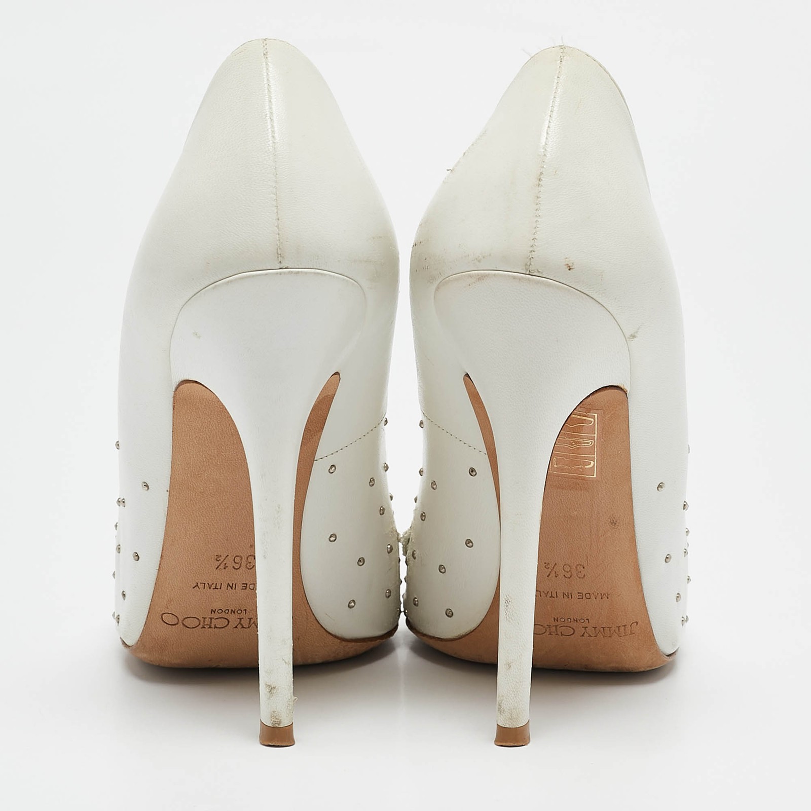 These white leather pumps are where timeless design meets modern allure. Artfully crafted in Italy, the pointed toe silhouette is adorned with delicate pearl embellishments, offering a touch of opulence.Certified by The Luxury Closet - This item has gone through a detailed authentication process overseen by our experts. We offer a lifetime guarantee of authenticity on all our items. Import duties, taxes and charges are not included in the item price. These charges are the buyers responsibility. Please check with your country’s customs office to determine what these additional cost will be prior to buying. Our eBay Store About Us Contact Us Add to Favorite Sellers Jimmy Choo White Leather Romy Pearl Embellished Pointed Toe Pumps 36.5 $185.9 These white leather pumps are where timeless design meets modern allure. Artfully crafted in Italy, the pointed toe silhouette is adorned with delicate pearl embellishments, offering a touch of opulence. Product Details Brand Color White Dimensions Material Leather Size 36.5 Outsole Width 8 cm Outsole Length 25 cm Heel Height 11 CM Includes The Luxury Closet Packaging Certified by The Luxury Closet This item has gone through a detailed authentication process overseen by our experts. We offer a lifetime guarantee of authenticity on all our items. How We Check The in-house team of experts at The Luxury Closet is highly trained to verify the authenticity and the condition of the luxury products. They ensure that only 100% authentic items are put on sale.The evaluation process is unique with its own mix of assessment criteria and differs according to the category. Each item is evaluated based on the following combination of hallmarks, hardware, stitching, symmetry, material, craftsmanship, stamping, codes, hologram stickers, and packaging. Our authenticators also check if the items have been modified or amended (e.g., aftermarket diamonds, replaced batteries, repaired bags, etc.) International Buyers Import duties, taxes and charges are not included in the item price. These charges are the buyers responsibility. Please check with your country’s customs office to determine what these additional cost will be prior to buying.