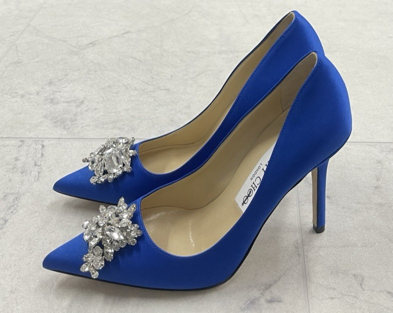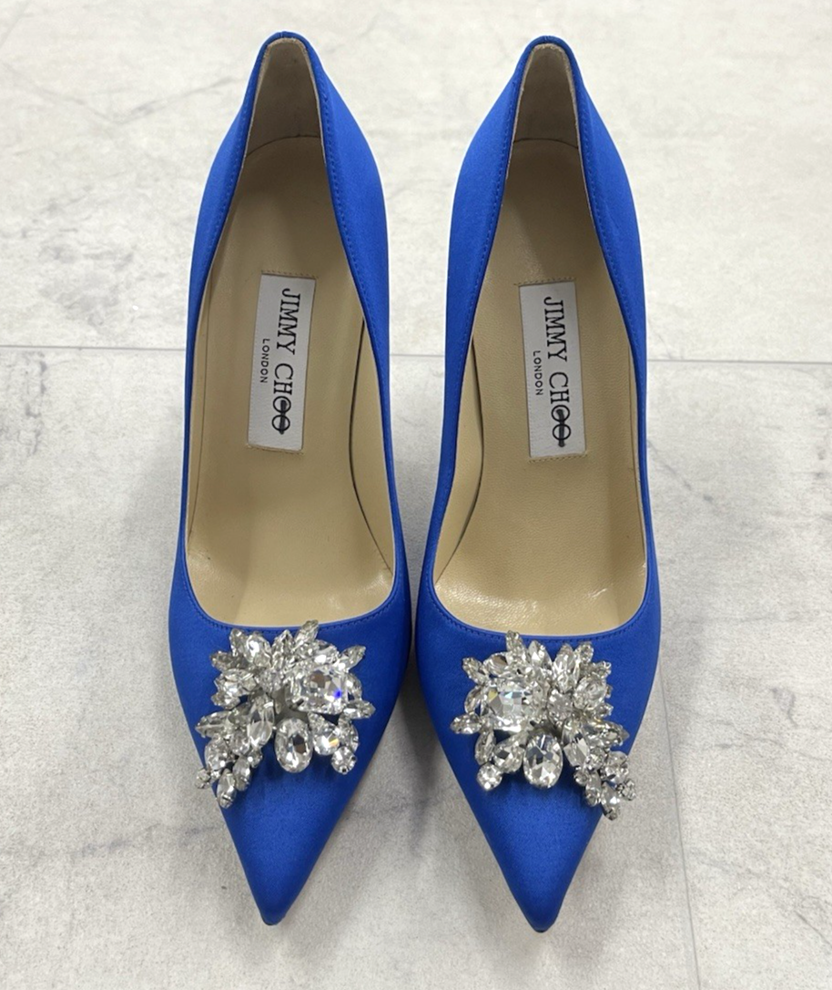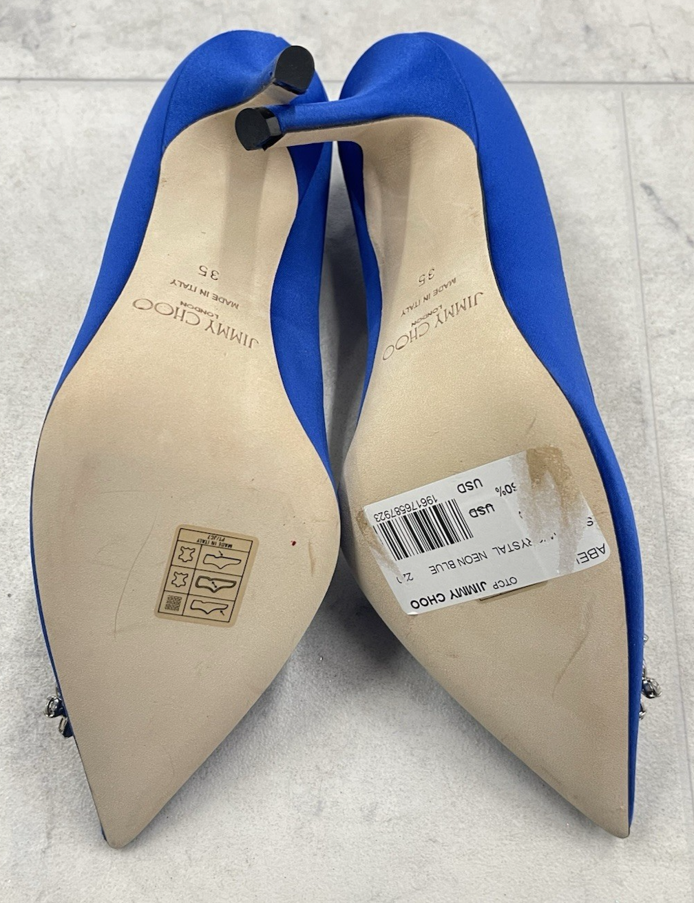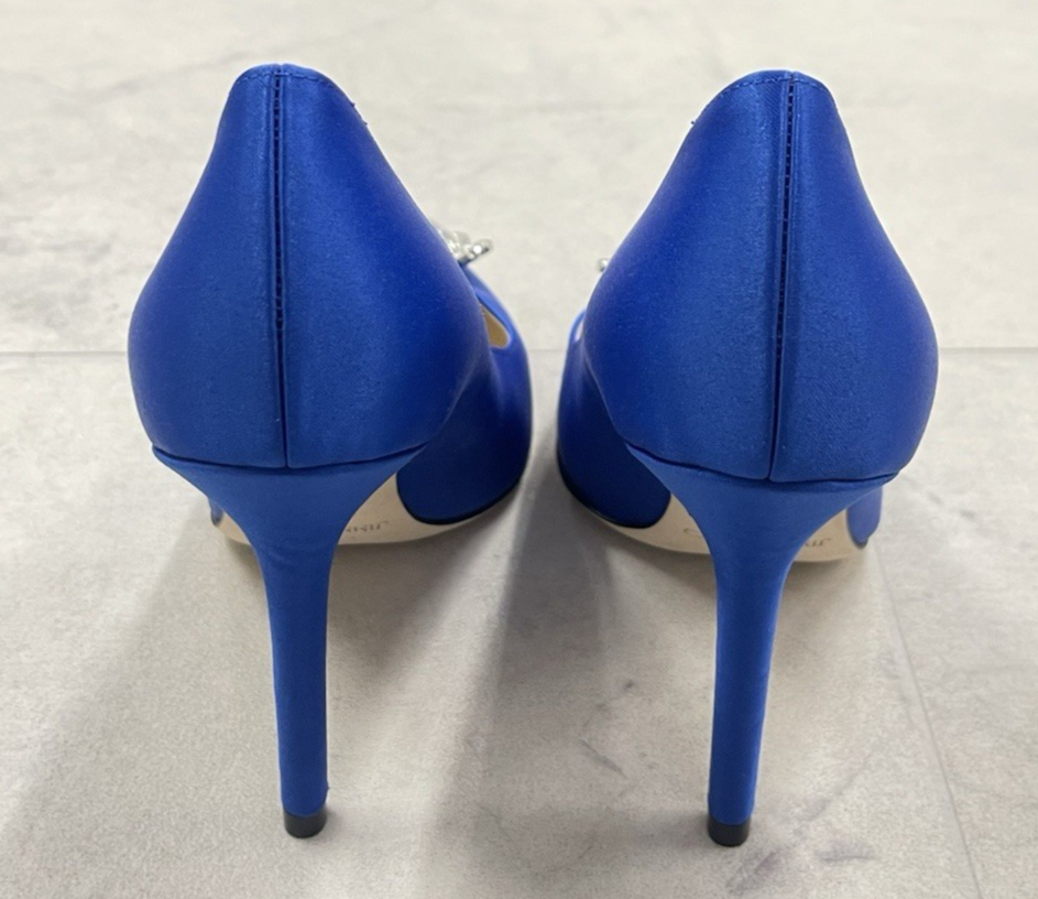 Brand: Jimmy Choo Size: 35 (5 US) Color: Blue Condition: New without a box Brand name in the interior has been blackline to avoid store returns Sole has scuffs and product sticker Measurements are approx. Width: 3" Sole: 9.5" Heel: 3.5" PLEASE FEEL FREE TO ASK QUESTIONS BEFORE PURCHASE Thank you!