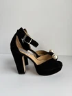 $ 18.48Antonio Melani Black Leather & Patent Leather Peep Toe Heels with Bow Size 10