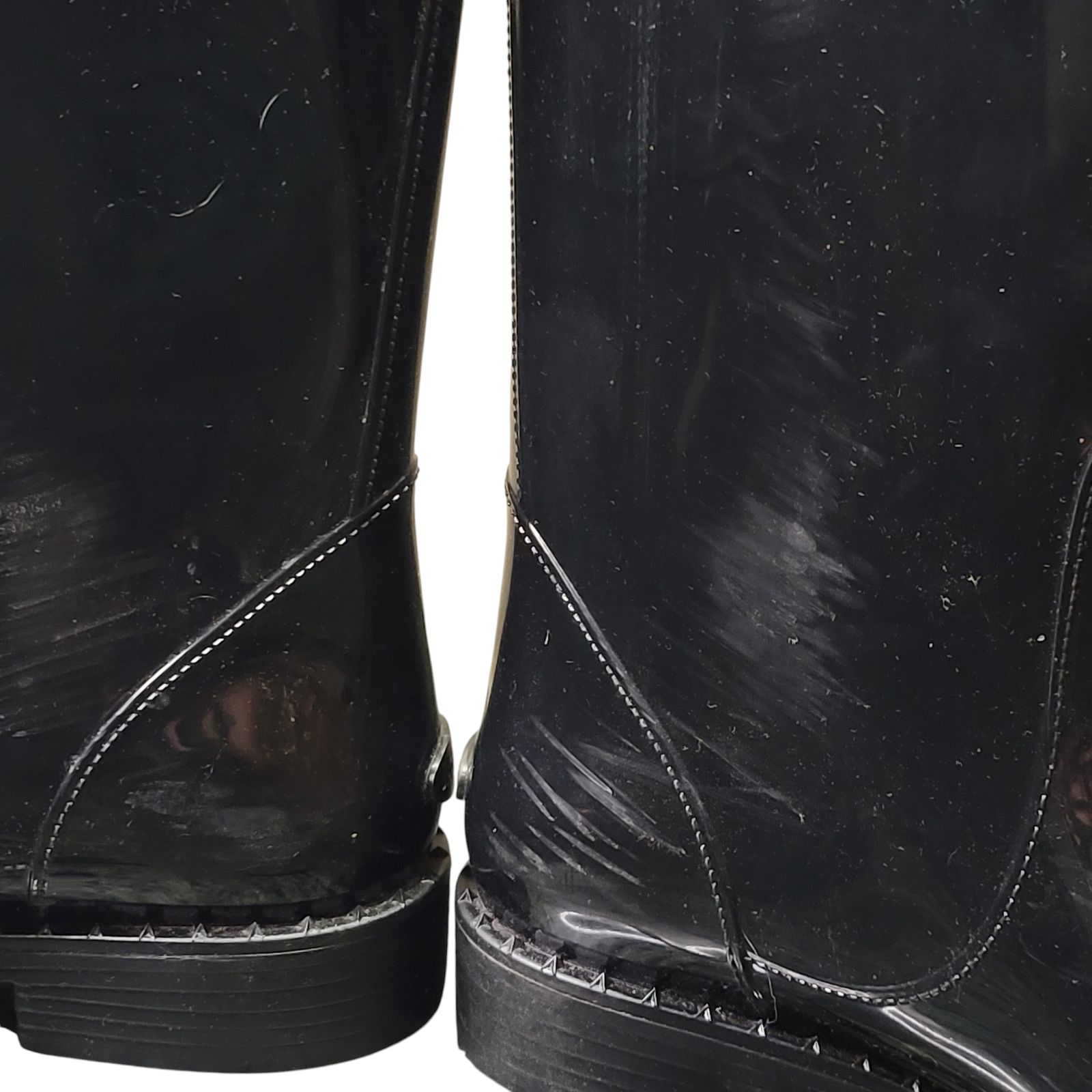 KleverKosmetics Our eBay Store About Us Contact Us Add to Favorite Sellers Jimmy Choo Women's Black Edith Rain Boots - EU 38/ US 8 *See Description* *No box/No Dust bag* ** "JC" gold-toned logo is chipped one one boot. Some scuff marks - Please refer to the pictures ** The Jimmy Choo Women's Edith rain boot is a luxurious, high-gloss take on the classic wellington style, made with weatherproof TPU or rubber material in Italy. It is characterized by an equestrian-inspired silhouette and signature gold-toned hardware. Silhouette: The Edith is a flat, knee-high boot, which is a key part of its elegant, equestrian-inspired design. Material: The boot is crafted from durable, polished TPU (thermoplastic polyurethane) or glossy rubber, creating a super shiny and resilient finish. Toe: It has a rounded cap-toe design. Logo details: The boot is adorned with signature Jimmy Choo logo hardware. Features a interlocking gold-toned "JC" logo on the side, while others have a rubberized logo at the heel. Return and Refund Information • Please be aware that colors on the screen may appear slightly different in person. • Please be familiar with product. Feel free to contact us if you have any questions. • DUE TO HEALTH AND SANITARY ISSUES CONCERNING COSMETICS OR SKINCARE WE DO NOT ACCEPT RETURNS ON THESE ITEMS. ALL SALES ARE FINAL. • WE WILL ONLY ACCEPT RETURNS WHEN THE ERROR IS ON OUR END. • Attention VeRO members: We're not affiliated with or endorsed by the companies mentioned in this listing. All trademarks and copyrights are acknowledged, they are only used for informative description of the items offered for sale. Warranty information We are not an authorized dealer of this product and any warranty included with the product may not be honored by the manufacturer.
