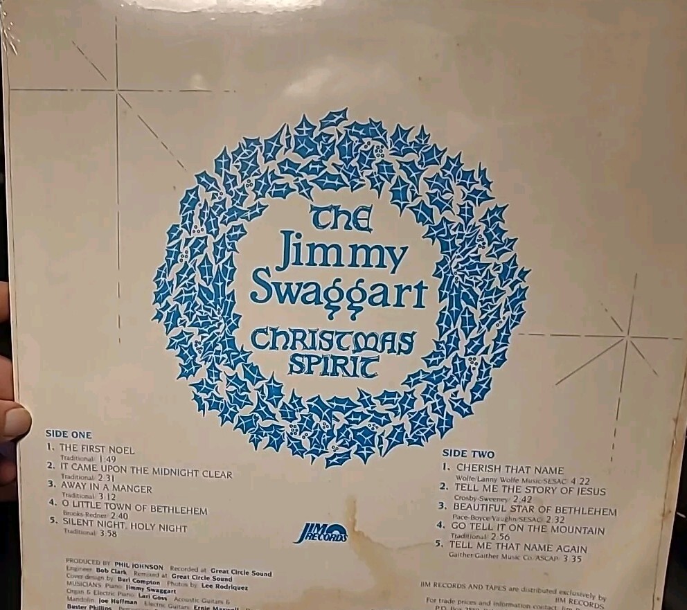 Get into the holiday spirit with this classic Christmas album by Jimmy Swaggart. The vinyl LP features 12" full-range sound and comes in a cardboard sleeve with the original cover. The record is a first edition released in 1972 under the Jim record label, and has been graded as Mint (M) for its excellent quality. The album is perfect for any occasion and features a variety of southern gospel tracks. The LP has a speed of 33 RPM and is in stereo format with English language lyrics. The sleeve has been graded as Very Good Plus (VG+) since there are corner wrinkles at the bottom. (See pics) and the record is made of high-quality vinyl material. Celebrate the holiday season with this timeless collection of Christmas spirit. See my superb feedback and other items. Combined shipping no returns.