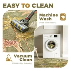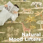 Welcome to THE UNFOLD! Your area rug has arrived in a new(and maybe unexpected) package: Folded! Here are a few pointers for unpacking your rug! 1. Our foldable rug comes folded in a smaller package which is more convenient to carry and unfold. 2. Please unfold the rug when you receive it. There will be creases at the beginning, please don't worry. Use your hand to gently smooth them out, flatten them on the floor and walk around, the creases will relax within a week. 3. The foldable rug is easier to clean, wipe the dripping liquid with a dry cloth as soon as possible. We can't wait for you to start enjoying your new rug! Make your home cleaning easier. Change the rug easily with your mood! Vibrant Jungle Animal Design: Elevate your home decor with our Jungle Animals RUG, designed to blend seamlessly with contemporary interiors while adding a playful touch inspired by nature Non-Slip and Sturdy: Designed to be safe for kids and pets, this carpet is made from premium materials, thin yet sturdy, making it perfect for high traffic areas and daily use. The non-slip backing provides the rug with a soft and comfortable footing while ensuring safety and stability Versatile Use: Whether in your living room, bedroom, or dining area, our area rug is a versatile addition to any space. It provides a soft and cozy surface for your feet while also acting as a stylish focal point in your room Easy Care: Please unfold the rug when you receive it. There will be creases at the beginning, please don't worry. Creases are effectively removed by rolling it up from any corners (the patterned side faces outward), then letting it sit for one or two days or ironing the back side Machine Washable: Vacuum with a SOFT ROLLER for gentle and effective cleaning . Designed with convenience in mind, this bedroom rug is also machine washable, allowing for easy cleaning and maintenance. Easily to keep a new looking