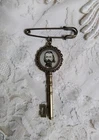 Historical image encased in a Victorian bronze tone key kilt pin brooch setting. Professionally handcrafted with loving care.