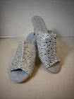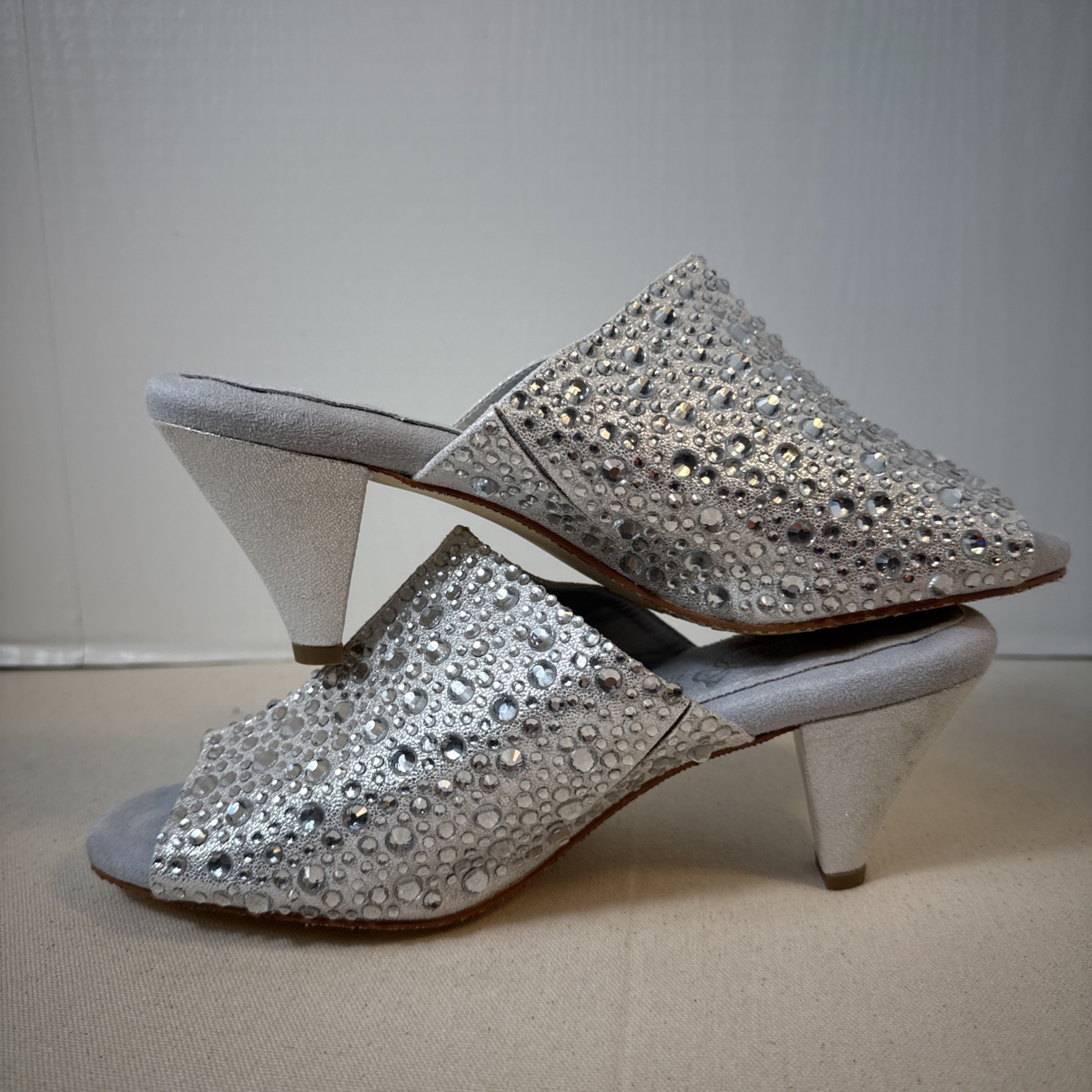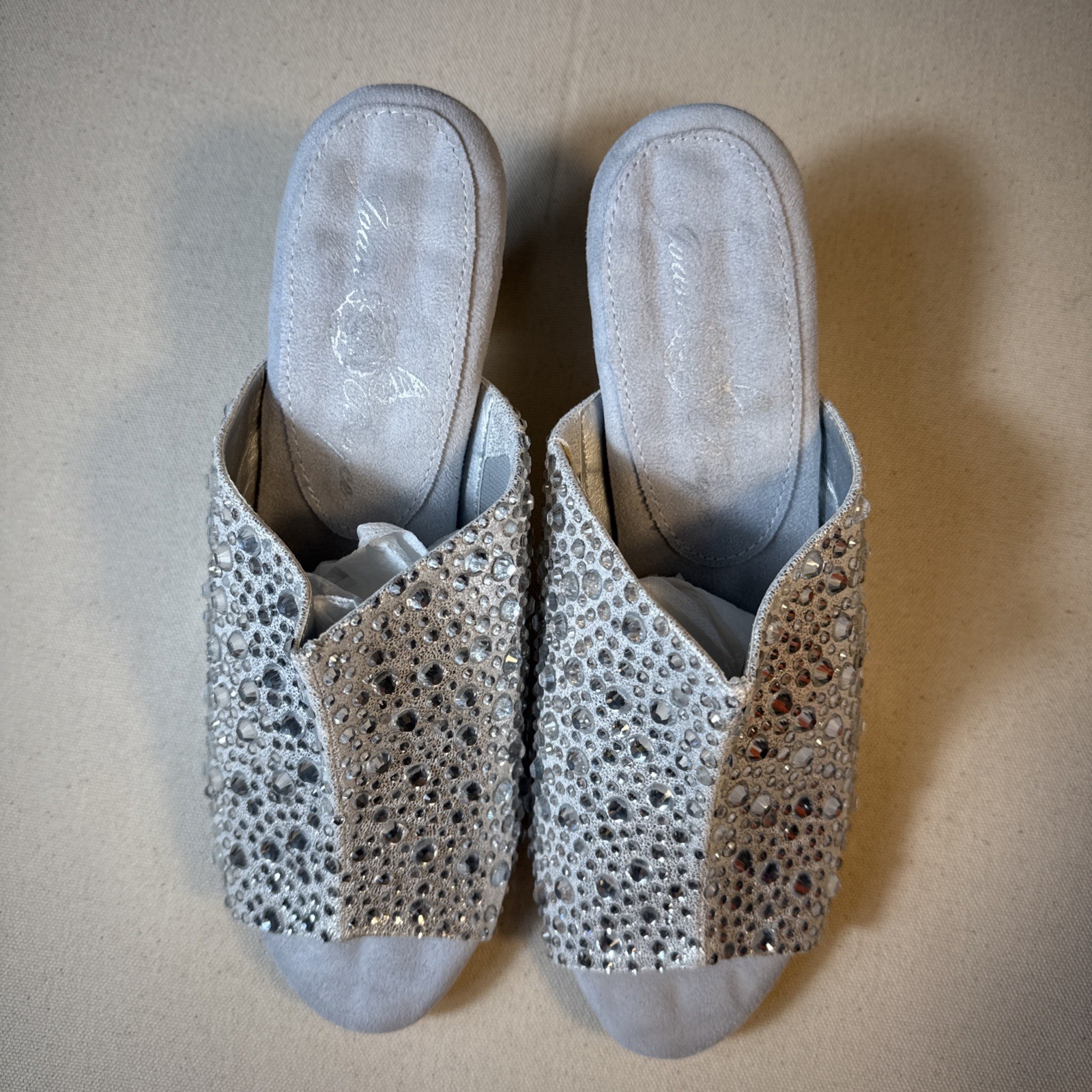 The Joan Boyce En Cruste Silver Rhinestone Slip On Heel in Women's Size 9 is a stylish and elegant shoe perfect for various occasions such as parties, weddings, and casual outings. Shine with style in these dazzling Joan Boyce rhinestone slide sandals. Known for her glamorous designs, Joan Boyce creates statement shoes that combine comfort with sparkle. These sandals/ Mules are perfect for adding a touch of bling to your everyday look. Features: • Brand: Joan Boyce • Style: Slide Sandals / Mules • Color: Silver • Upper: Fabric with allover rhinestone crystal embellishments • Open toe design • Cushioned insole for comfort • Dressy, glamorous, and eye-catching Size: 9 Condition: Pre-owned, gently worn (see photos for details). NO holes, tears. Please view all pictures carefully, check measurements and sizes, and please message us with any questions. All shoes cleaned and sanitized. Shipping USPS ground advantage. See another item in SweetShine?s listings you?d like to purchase? We combine shipping. Shop with confidence***Returns accepted within 30days! Returned items must be returned in original condition received, buyer pays return shipping cost. Follow us here on eBay. Take a peek at SweetShine's other listings. Thanks for viewing. Happy Shopping!