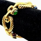 Up for auction is a mixed lot of vintage jewelry signed by Joan Rivers, featuring gold tone necklaces, bracelets, watches, and pendants. This collection offers a variety of unique and stylish accessories that are sure to add a touch of glamour to any outfit. With the combination of sparkling rhinestones and an elegant pearl, this lot is perfect for those who appreciate vintage and antique jewelry pieces with a modern twist. Includes: Stretch multi-colored faceted bracelet 7”. Set of 2 bow tie hinged enamel bangle bracelets both 7-1/2”. Faux citrine faceted glass pendant 1-3/4” long. Medallion 7 strand black cord Byzantine style necklace 19”. Caged Pearl pendant necklace 29”. Heart rhinestone pendant necklace 26”. Watch pendant with bow and rhinestone necklace 30”. Heart rhinestone brooch 1-1/2”. Yellow and orange watches both NOT RUNNING and measure 9” in length. 32” chain Glass multi-colored bead necklace 43”. Chain link bracelet measures 8” Faux Pearl and rhinestone teardrop pendant 1-1/2”. ALL JEWELRY IS SIGNED JOAN RIVERS. PLEASE SEE OUR OTHER LOTS AND ITEMS AVAILABLE. We accept returns.