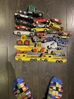 Selection of Matchbox Lesney / Corgi/ Burago Trucks. Playworn Condition as can be seen in the pictures. Peugeot 405 Rally Car, Corgi Supersonics Saab 9000, Corgi Jaguar XJS, Corgi Jeep CJ5, some non-branded vehicles etc etc. What you see is what you get, you can even have my jazzy socks if you want them but let me know if you do. Sent Tracked