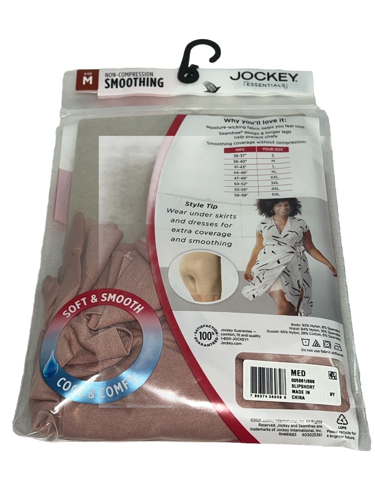 Enhance your underwear collection with these Jockey Essentials Pink Non-Compression Smoothing Slip-Shorts. These panties are perfect for women looking for comfort and style. The slip-short style allows you to wear them discreetly under your clothes without any visible panty lines. Made from a blend of nylon, spandex, and cotton, these panties are machine washable and feature seamfree technology for a smooth finish. The high-rise design provides excellent support, while the moisture-wicking and smoothing properties ensure a comfortable fit throughout the day. These panties come in a pack of one and are available in a beautiful pink color.