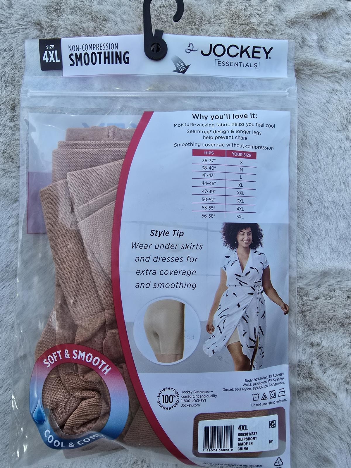 Experience ultimate comfort with the Jockey Essentials Seamfree No-Chafe Slipshort. Designed with a cotton gusset for added comfort and a moisture-wicking fabric to keep you cool. This slipshort features a smoothing, non-compression fit that helps prevent chafing and provides a seamless look under skirts and dresses. Soft and smooth fabric ensures a cool and comfy wear all day. Ideal for wear under skirts and dresses for extra coverage and smoothing effect. Size: 4XL.