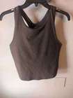 Elevate your activewear game with this Jockey Women's Studio Crop Top. The sleeveless tank top features a solid brown color, pullover closure, and is made with a blend of polyester and spandex fabric that is light in wash. The top is machine washable and designed with an athletic fit, making it perfect for various activities such as tennis, beach, cross training, dance, crossfit, yoga, pilates, running, and cheerleading. The crop top also comes with built-in bra and moisture-wicking features, providing comfort and support during your workouts. It is lined and available in size M, making it an ideal choice for women who are looking for a stylish and functional activewear top. Get your hands on this high-quality Jockey Women's Studio Crop Top today and take your fitness game to the next level!