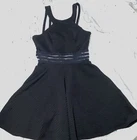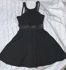 Formal halter neck black maxi dress with slit at bottom, and mesh insert stripe design on stomach. Brand new no tags and never worn. Black size 1. Measurements in photos