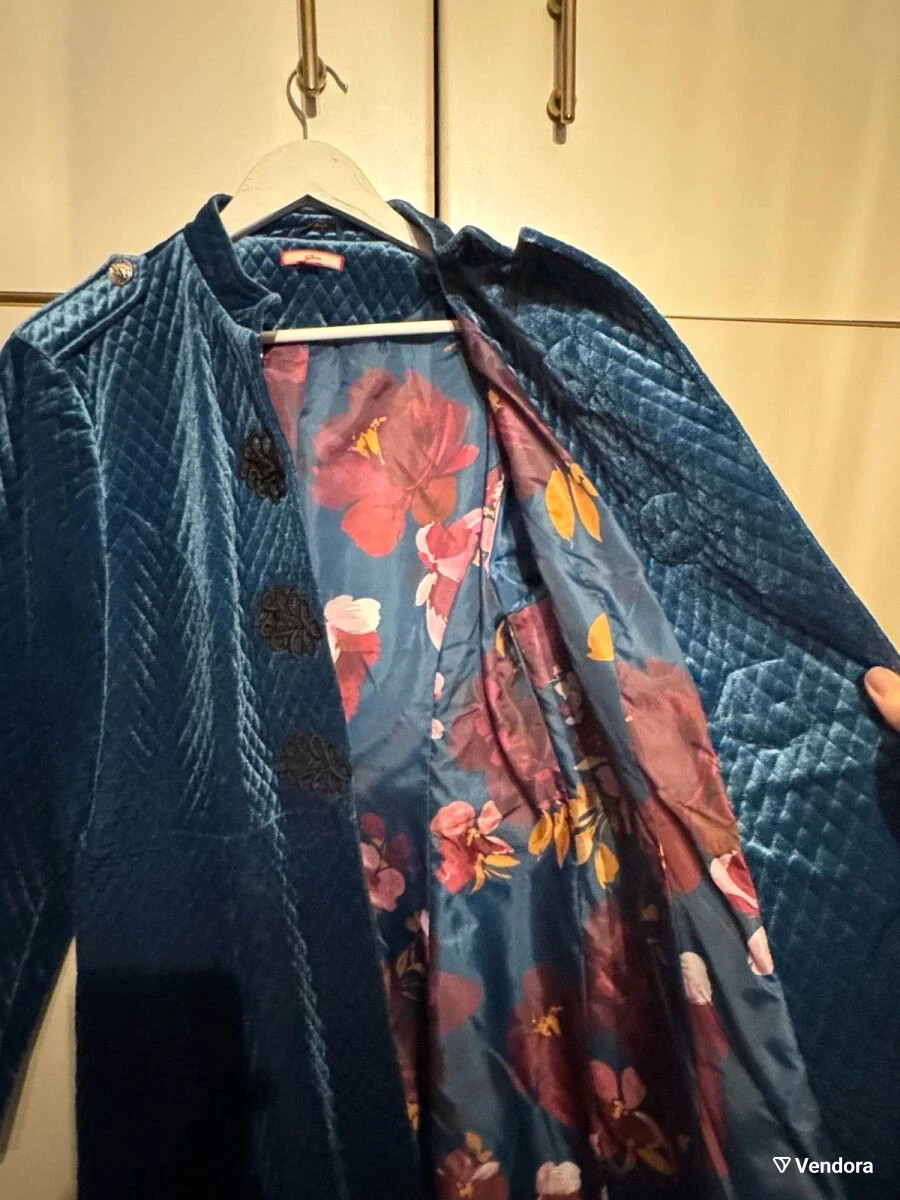 Statement boho-vintage velvet coat by Joe Browns in a rich teal blue shade, featuring diamond quilting, ornate black frog closures and a dramatic floral satin lining. A chic, theatrical outerwear piece that elevates winter looks — perfect with dresses, wide-leg trousers or evening outfits; ideal for festive events, theatre nights or adding boho-luxe flair to your everyday style. Highlights: Brand: Joe Browns Color: Teal / Deep Blue (photos taken indoors) Fabric: Velvet, diamond-quilted (soft, plush feel) Lining: Floral satin print in warm tones Front: Decorative frog closures + top neck button Details: Epaulettes with gold-tone buttons Size on label: UK 18 / EU 46 / US 14 Condition: Excellent worn once , no visible flaws Length: Knee to below-knee depending on height Condition Notes: Clean, fresh, ready to wear. No visible stains, tears or odors. Please see all photos for close-ups of quilting, frog closures and lining. Careful packaging. Worldwide shipping available. From smoke-free home. Happy to provide extra measurements or photos on request. #Joe Browns #coat #velvetcoat #bohostylecoat #vintageinspiredcoat #winterstatementcoat #women’scoat #theatricalouterwear #epaulettes #frogclosures.
