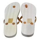 Brand: Joe Fresh Style: Womens flip flop sandals with classic thong straps and flat foam soles. Color: Multicolor striped footbeds in shades of pink, white, yellow and black with metallic gold straps and white outsoles. Size: Womens US 6 (per hang tag marked "SIZE / TAILLE 6"). Materials: Plastic upper thong straps with textured synthetic foam footbeds and man-made outsoles. Details: Slip-on design with toe post, lightly textured footbed surface for comfort, chevron-textured tread on the soles for grip, ideal for casual warm-weather wear at the beach or pool. Additional info: Joe Fresh branding printed on the footbeds, hang tag, and plastic retail hanger; factory size and care stickers remain on the outsoles; sold new without original shoe box.